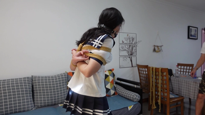 骚货清扬尝试cosplay,穿日本女高中生水手服给叔叔看,被叔叔用日式紧缚捆绑跪地,圆圆的[不可描述]被勒得紧紧的,天生敏感小m,口水流了一地,驷马捆绑后又被拎起,口水沾在白丝袜上,羞耻难当而又兴奋不已