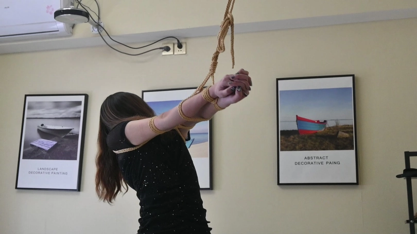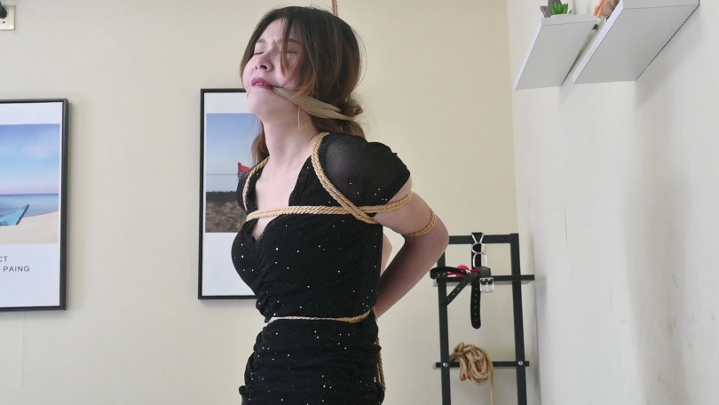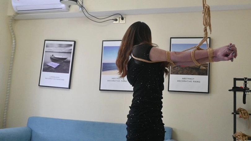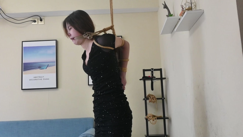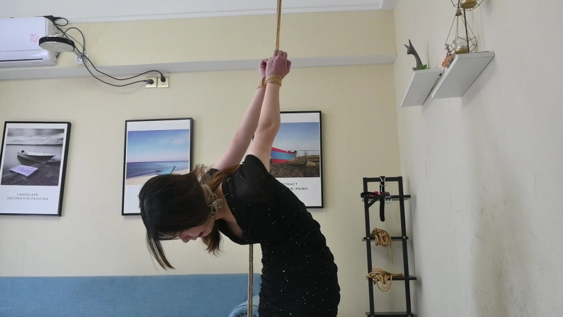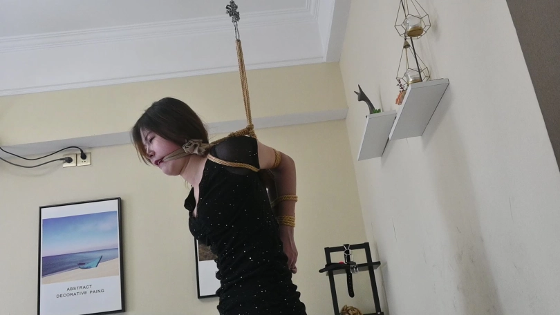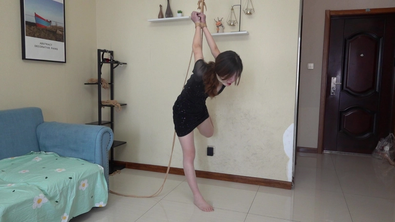 小网红瑶瑶身穿性感夜店风短裙,黑色亮片裙搭配性感肉丝,化身夜店陪酒女郎,先是被直臂曲臂吊缚,又痛苦地被单腿吊缚起来,脱掉高跟鞋,只能赤脚踮脚才能减轻身上的痛苦,玉足又被折磨地痛苦不堪,后来竟轻声啜泣起来。