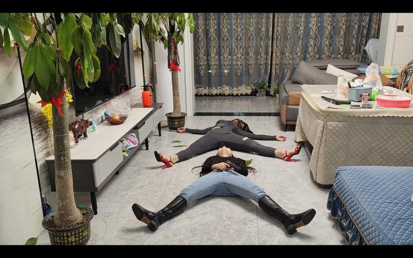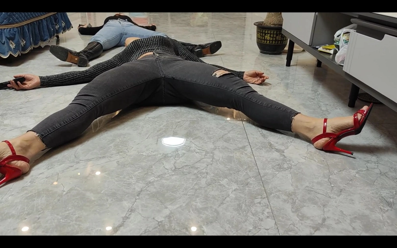 两个美女间谍被多次击倒,摆出各种性感羞耻的姿势。涉及元素有凉鞋、裸足、牛仔裤、昏迷等。
