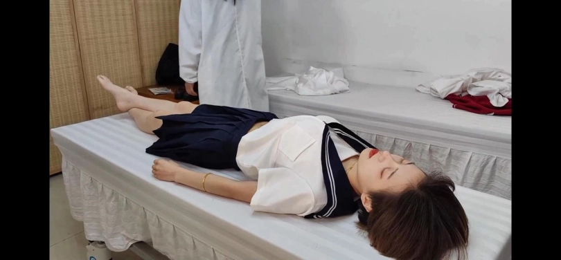好色女医生摆弄被送过来的昏迷jk美女,翻眼皮摆弄身体换衣服。