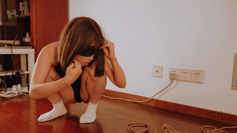 朝阳熠熠,斑驳的麻绳编织着青春的肉体,少女着黑色泳衣在潮热的空气中颤栗。
