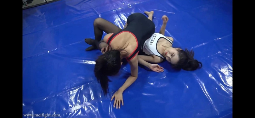 两个丝袜美女大战,用各种方法蹂躏对方,摆出各种羞耻姿势,最终黑丝美女力竭战败。