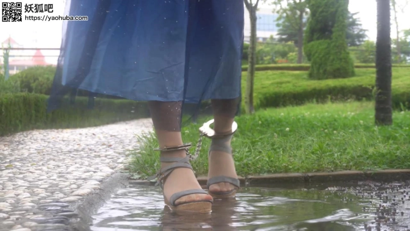 时逢雨天 户外散步 雨滴 金属 后面是镣铐换丝袜