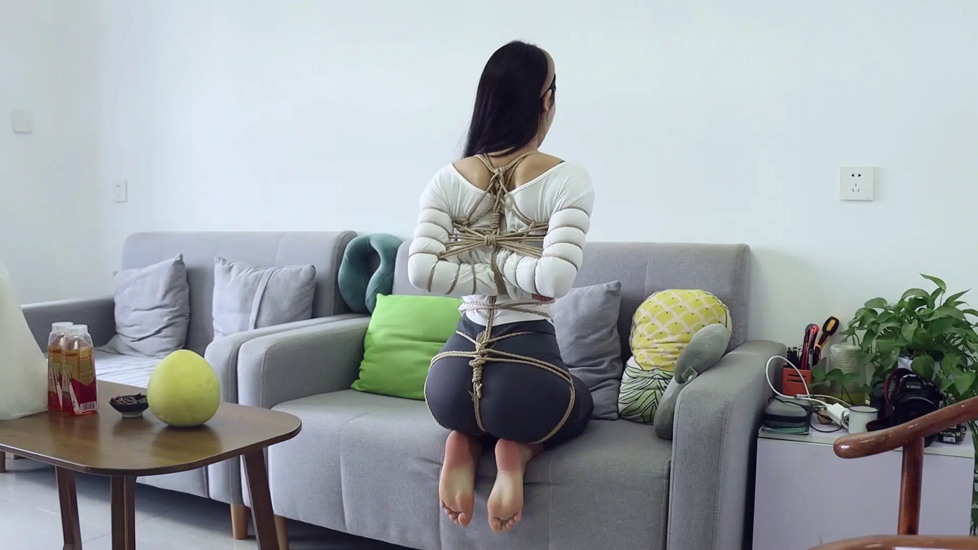 上回杨若琳到工作室体验了一次绳艺,意犹未尽,今天邀请闺蜜(女绳师)来家里玩。来看看我们的杨若琳的居家生活吧。这次若琳穿的是瑜伽裤,绑起来后居然舒服的在沙发上睡着了。
