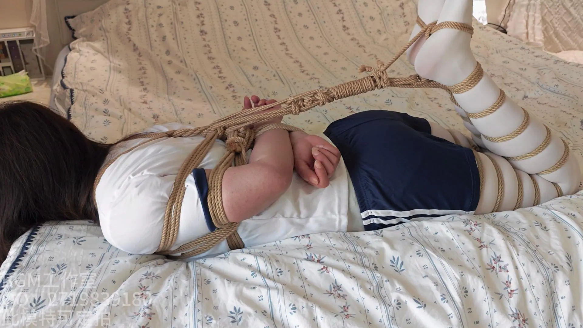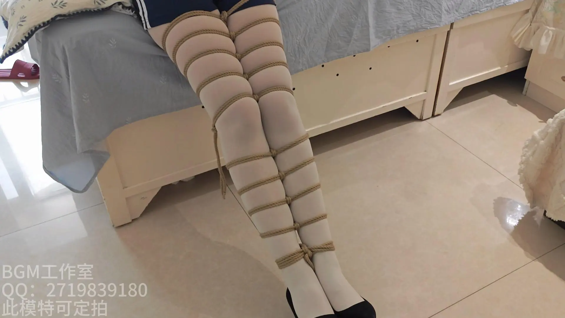 新找的模特,感觉性格特别好,满屏的白丝大长腿。梦梦挺怕痒的,手刚碰到脚心就叫,有机会可以拍个挠脚心的视频,记得关注哦。视频元素有:绑腿,驷马搬运,白丝脚底特写,挠脚心,驷马立。