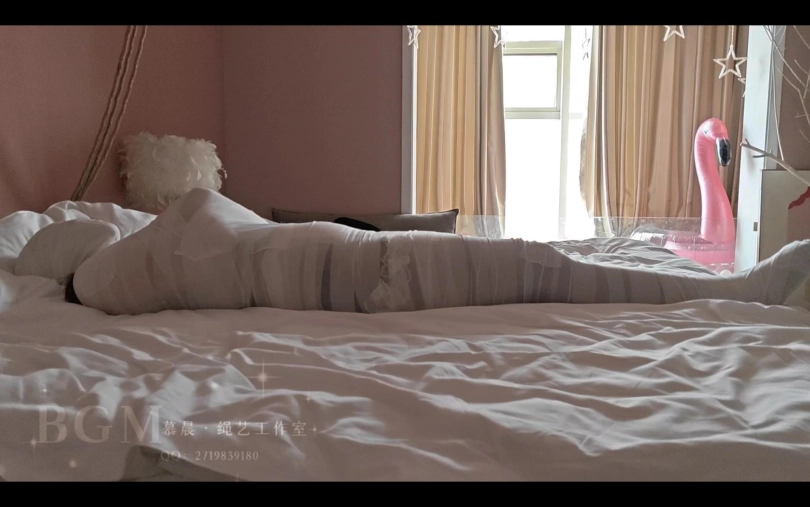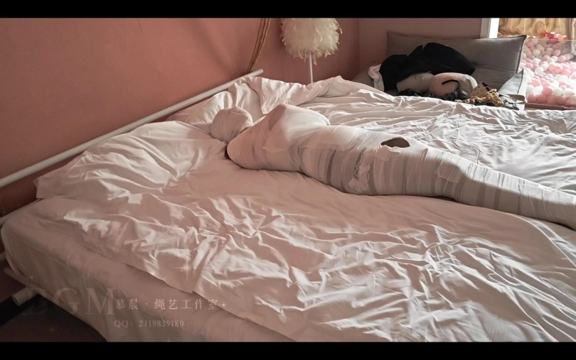 文曼 穿上灰丝将大长腿绑起来挠痒,中间给她加一个小玩具,解开后她说好舒服都湿了。完事后将文曼使用绷带包成木乃伊放置半个小时,在某个部位剪个洞放入玩具,木乃伊开啥抖动起来。