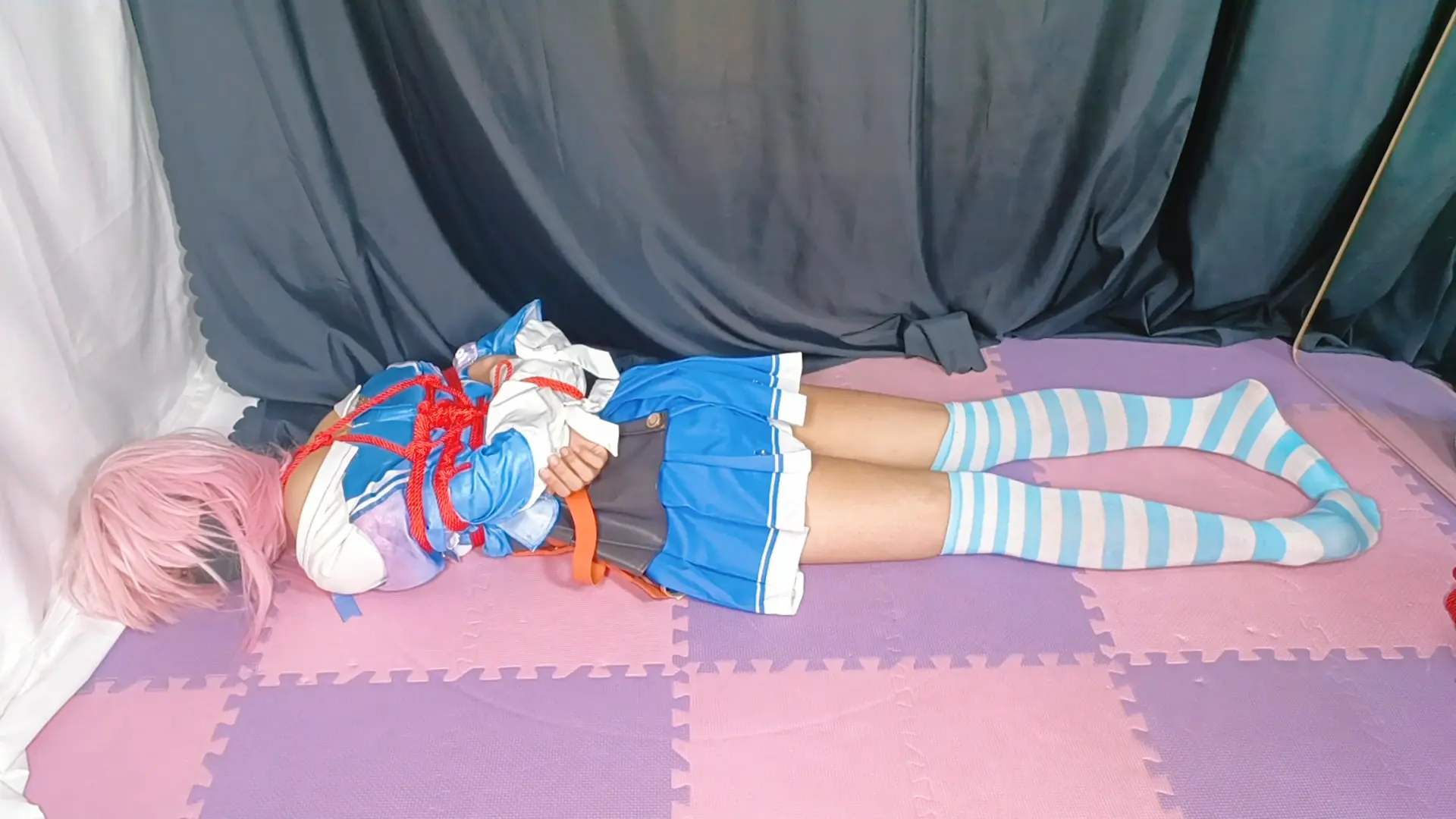 先是把上半身绑起来,接着各种各样的道具当然是不能够少的啦,接下来,自然就是好好的玩弄了,电击,挠脚心,打屁股的感觉不错吧,这柔软的身体,手感真好,摸起来真舒服,看着被郊狼电的一抖一抖的身体,真是可爱呢,最后的话,想到了一些奇怪的鬼点子,郊狼开启语音功能,在一旁打着音游,这样子就可以同时欣赏音乐和小三月的叫声了!!!
