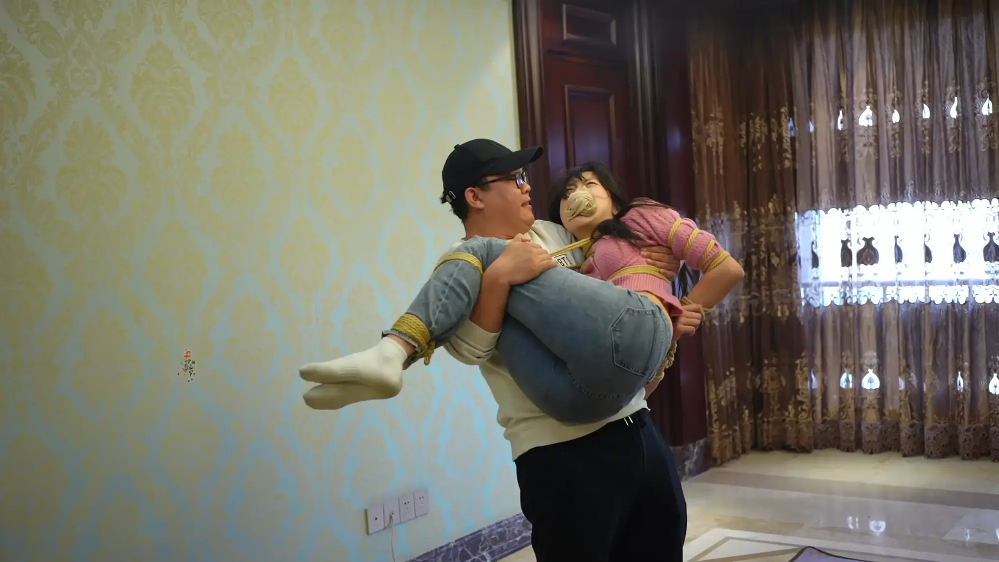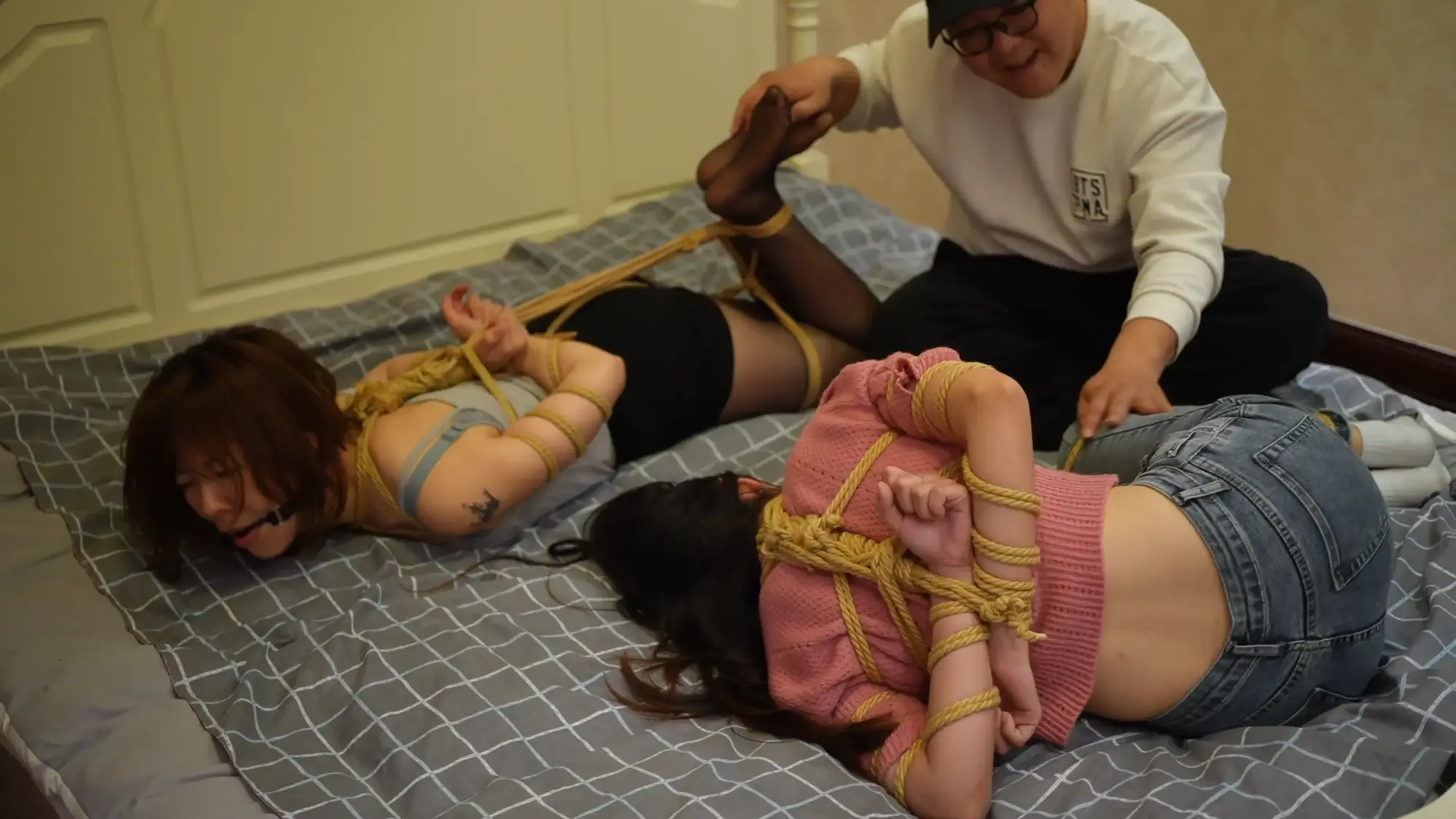 【视频时长】:01:04:09 【文件大小】:3071MB 很久没有见到这种长相清纯的模特,于是突发奇想拍一部母女主题的剧情片。 母亲角色我选择气质独特的eva(枫叶叫米粒)扮演,女儿由小智扮演,两位模特的身段都非常曼妙,尤其是eva穿上特定服装人妻感瞬间就有了,两人的演技eva是老演员了自然不用担心,各种表情和语气都拿捏的很到位,小智虽然是新模特缺少表演经验但成片中表现也出乎我的意料。不过因为小智是新模,为了可持续发展不把新模特吓跑,涉及到内涵、摸胸等内容只在米粒单人出镜的时候有,这也是对年轻模特的保护。毕竟尺度这个东西只能循序渐进,还请大家多多理解。不过即便如此,这次摸胸也拍的很到位,米粒的表现也很诱惑,嘿嘿~ 剧本和拍摄方面,工作室剧本还原度很高,几乎没有改动,各种分镜和拍摄角度也能看出来很专业,推荐大家定拍(工作室Q:3821108537) 剧情介绍: 米粒是一位单亲妈妈,她的女儿叫小智,刚刚20岁出头。某日米粒正在大家打扮准备出门办事,突然有人敲门,趴在大厅玩手机的小智开门见到是房东王叔,便叫妈妈出来迎客。见到房东的米粒很惊恐,示意女儿进卧室,自己和王叔谈点事情。房东等小智走后,突然开始对米粒动手动脚,询问米粒打扮这么好看是要去干嘛?米粒很抵触的拿开房东的手,表示如果没有要紧事就出门办事了。说完米粒便起身走进自己的卧室,房东见米粒这种态度也不再卖关子,要求米粒今天补齐房租欠款,米粒求情却被房东打了一巴掌,并被威胁交不起房租就把她们母女两人赶出去。米粒跪在地上请求房东宽限一段时间,自己什么条件都可以答应。房东听后拿出了包中的绳子,告诉米粒只要她答应让自己绑起来玩弄一番房租的事就不追究。尽管米粒不停抵抗但还是被房东强制捆绑,房东摸着米粒的胸部说,只要把自己伺候高兴,房租甚至可以全免,米粒只要点头答应,房东要求米粒按自己的指令完成各种动作,最后要求米粒趴在床上,欲火上身的房东随即侵犯了米粒。 过了一会儿小智出了卧室见妈妈和王叔不在客厅,便去敲米粒的房门,此时房东刚刚完事,给米粒松开了绳子,听到敲门声的米粒着急的将绳子藏到床单下后开门,面对疑惑的小智,米粒编理由隐瞒,并让小智送王叔出门。 此后房东经常来米粒家中,明面上是拜访,实则来发泄欲望。某一日小智刚刚送走房东,收拾妈妈的房间,米粒却突然过来帮忙,小智询问妈妈最近王叔来这么频繁,是不是因为房租的事,米粒反问小智是否什么不对劲的地方,小智突然注意到米粒手腕的绳痕,询问是不是受了伤,米粒表现得很紧张,表示自己收拾床铺就好,示意小智去客厅休息,小智确信妈妈有事瞒着自己。 第二天,小智不在家,房东又来敲门,看到是米粒开的门便询问是不是小智不在家,米粒表示房东来的太频繁,小智已经有所察觉,希望房东能收敛一点。可惜房东根本听不进话,还表示既然小智不在家这次就在大厅玩点刺激的,便又将米粒绑了起来,于此同时出门得小智发现没有带包便折返回家,房东正玩得兴起,突然听到开门声着急的躲到了卧室内,小智进门后见妈妈被绑在沙发上,随即撕掉妈妈嘴上的胶布,着急的询问情况,米粒大喊小智快跑已经为时已晚,房东从背后将小智捂晕了过去,最后将米粒也迷晕开始绑小智。 片刻过后,被五花大绑的母女两人苏醒,小智呵斥房东放开她们两人,米粒告诉了小智实情,小智大骂房东是趁火打劫。愤怒的房东将小智的头按在地上,准备好好教训下她,米粒求情放过小智,房东为了让小智知道厉害,将她桃缚防止乱动,并当着小智的面玩弄米粒,小智不停挣扎倒在了地上,房东又将她并腿团缚,继续玩弄米粒,被丝袜堵嘴的小智只能在一旁眼睁睁的看着。 玩累的房东随后将母女两人抱到了卧室,将米粒驷马捆绑后开始挠两人的脚心,最后锁上房门任由母女两人在床上挣扎。 ![]() ![]() ![]() ![]() ![]() ![]() ![]() ![]() ![]() ![]() ![]() ![]() ![]() ![]() ![]() ![]() ![]() ![]() ![]() ![]() ![]() ![]() ![]() ![]() ![]() ![]() ![]() ![]()