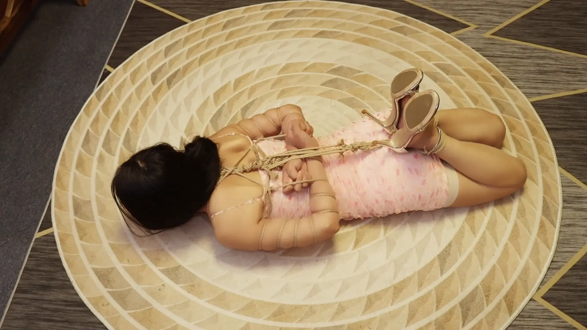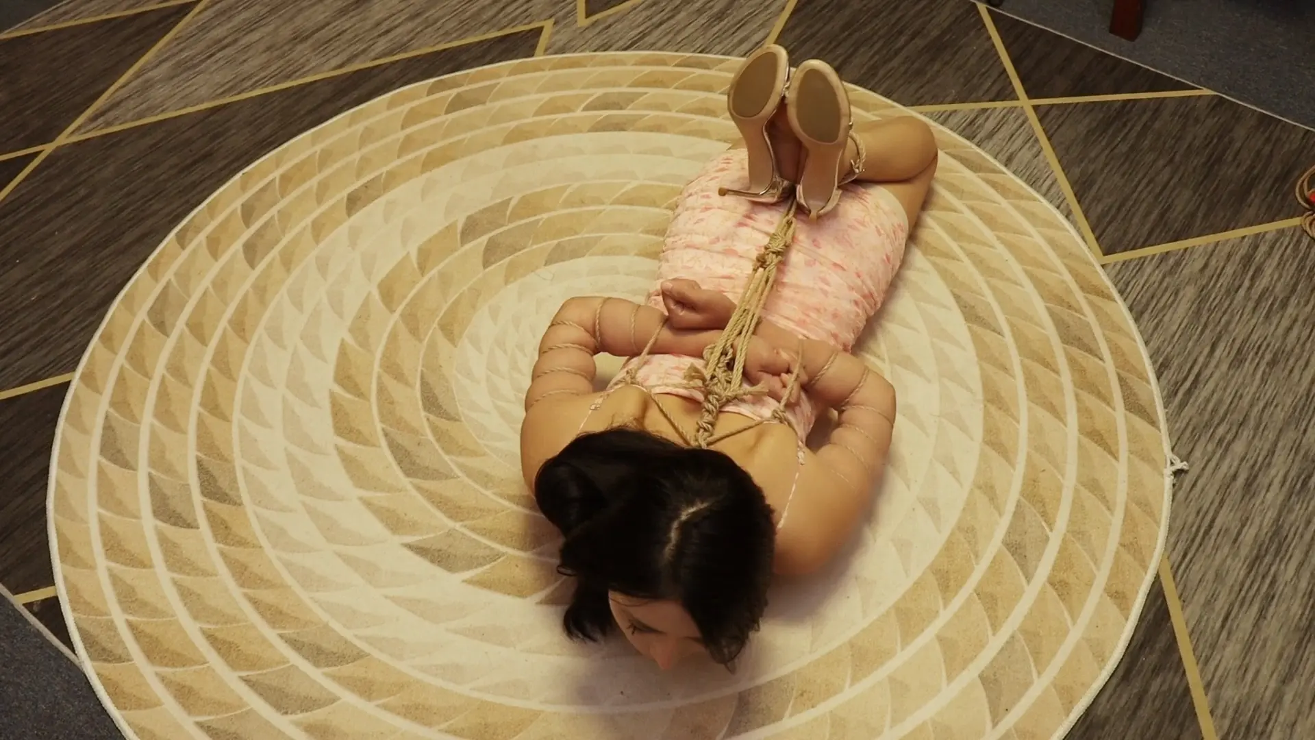 杨若琳被驷马绑在垫子上,带上了红色口球放置,一会儿就口水横流,期间换个团缚姿势继续放置,居然睡着了,若琳名副其实的“睡神”。