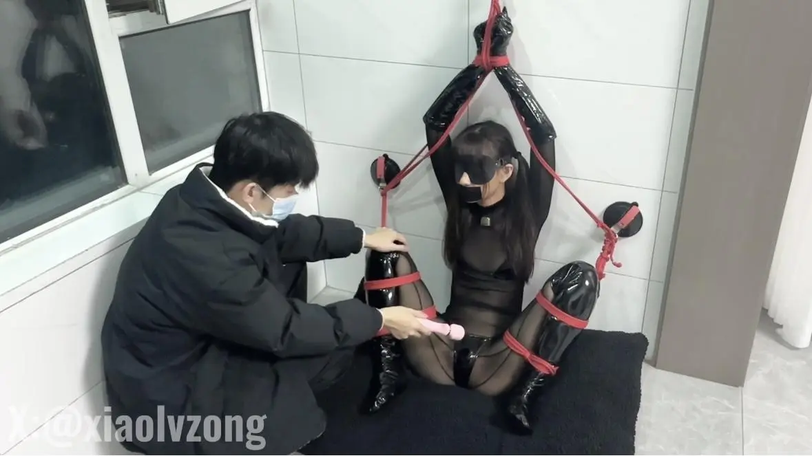 小鱼穿上了连体的黑丝和一个皮质三点式 这次四肢都被分开固定起来 再拿出她害怕的小皮拍 只是摩擦身体她就开始颤抖了 这个皮拍比较疼所以她比较恐惧 后面打的差点疼哭