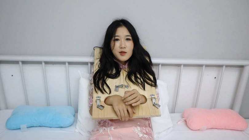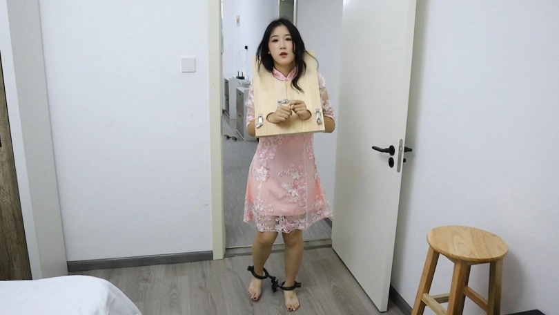可儿穿上粉色旗袍,还挺有那么个感觉的,本片中以颈手枷和足枷为主,算是一个木枷侧测试拍摄了,效果还挺不错,非常适合挠痒痒,加上可儿确实十分怕痒,挠起来的效果非常好!!!