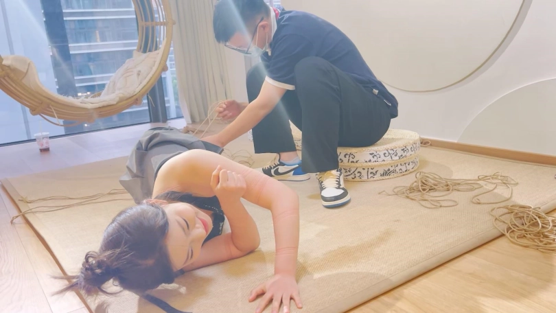 一个话痨兼职妹子,身材柔韧性还挺不错,性格比较大方,带上口球了还想说话,搞的口水流了一地,绑之前还有点小看直臂驷马,绑完之后就老实了。