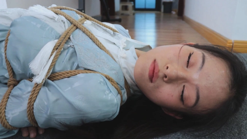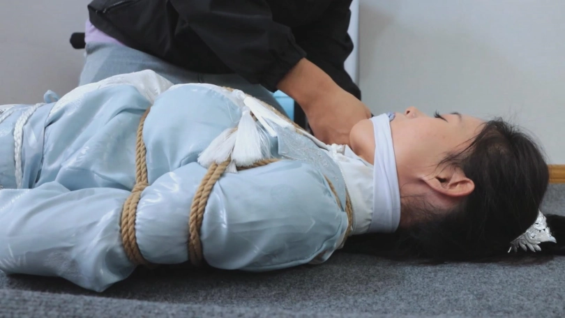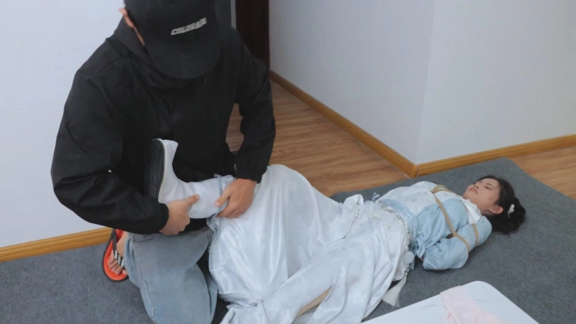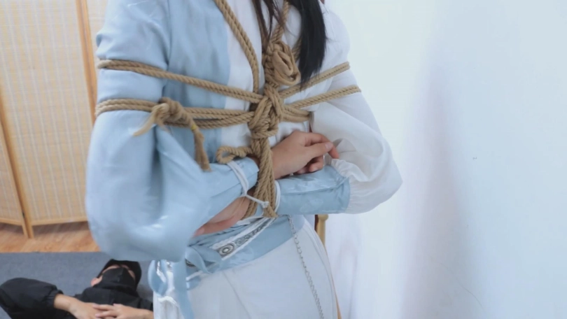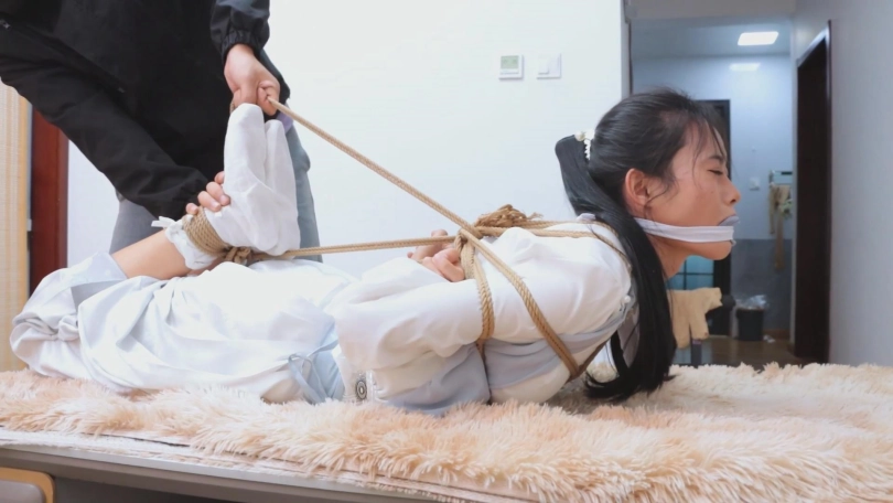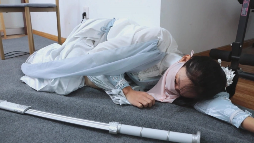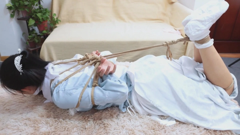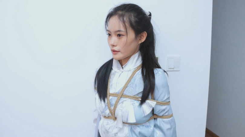 【亮点】新模特语汐女侠古装登场+被贼人暗算中毒,被东洋绳缚术绑住+依靠腿功奋力反抗,然而却被脱掉靴子,点了穴道动弹不得+被贼人用丝绸手帕堵嘴后极限驷马,如果不能挣脱的话将会武功尽失,变成废物美女。