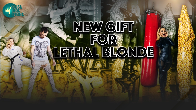 Olga arrived at the gym where a gift was waiting for her hanging next to the boxing bags. She realized that it was a new live punching bag and immediately started practicing her punches on it. Then she unpacked it, changed into a kimono and continued to play with it on the tatami.