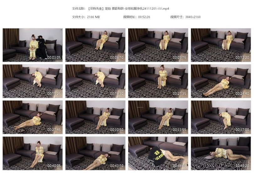 安慈隶娘风格的黄色和服捆绑挣扎,红口球堵嘴再丝袜蒙嘴,最后装袋带走。安慈确实很漂亮而且身材好,表演也十分卖力。借用下前辈的评价,真是“天使脸庞,魔鬼身材”