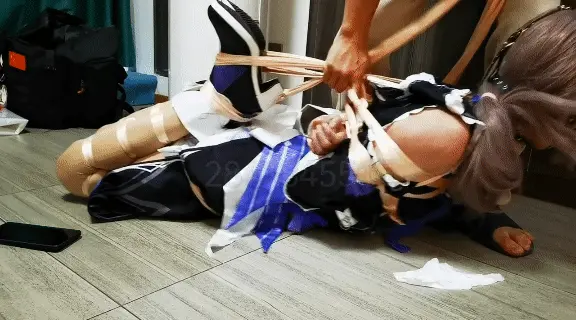 来玩玩丝带,给伪娘m用丝带绑成驷马,马具口球连接驷马上强制抬头开始折磨,小m今天好像有点虚,怎么一副绵软无力的样子,让我用郊狼给他开开机。直接加到100多,呜呜叫的声音还是有点小啊,开到200让你享受享受!这下小m总算开始挣扎了,被电的疯狂扭动,不一会就累趴了,唉真不经折腾,紧接着拎到楼道下又是一顿极限驷马。甚至身体悬空。最后包上手给你塞真空袋好好反省一下!