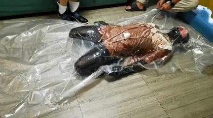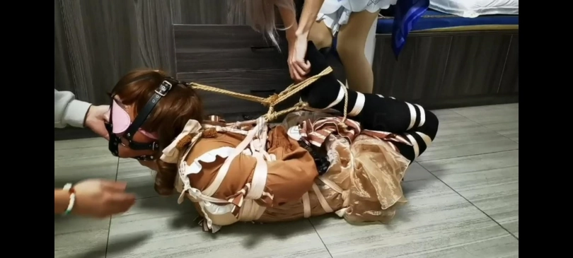 今天给新来的m上上强度,先用丝带绑上日式和并腿,然后拿绳子绑成驷马再连接马具口球,拉紧绳子这部分我很喜欢,每拉紧一点驷马带给m的压迫就大一点,这次m的柔韧性到挺不错,身体居然能被拉成弓状,这下想翻身都难,然后就是和另一个伪娘m一起折磨他了。这个m似乎还没有适应极限驷马被折磨得嗷嗷直叫,全身疼痛难忍,那这样暂时先放过他装进真空袋密封起来做成手办。