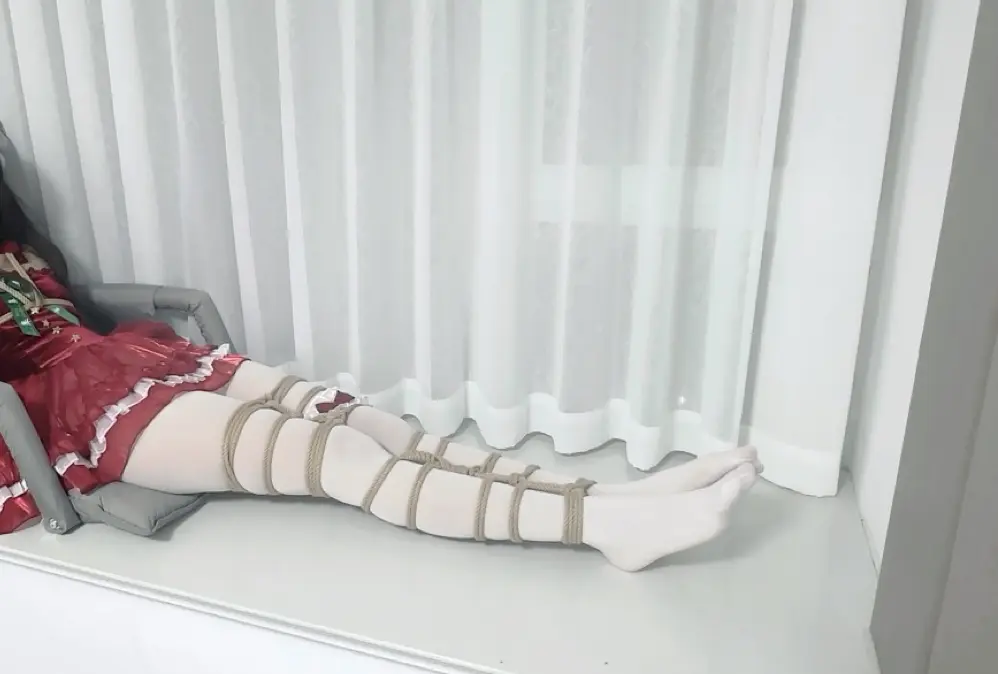 圣诞节快到了 小鱼穿上了圣诞小套装配上白丝 一开始给她绑个日式 然后再把双腿并拢绑起来 开始tk折磨 她忍不住边笑边挣扎