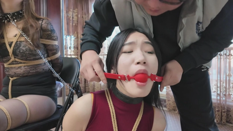现在被项圈折磨痛苦不堪的紫嫣和自信送绑却无能为力的真夜,
