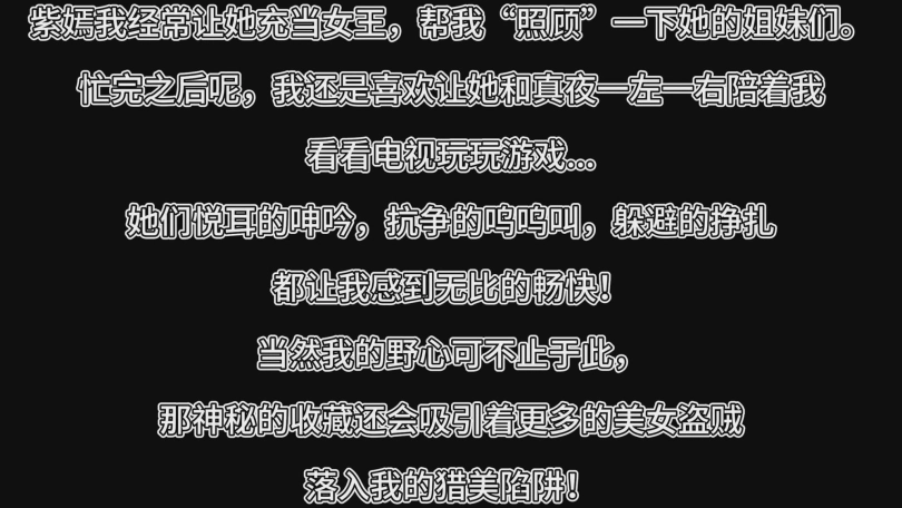 不过我的野心可不止于此,我的猎美陷阱还等着更多的美女盗贼们大驾光临呢!