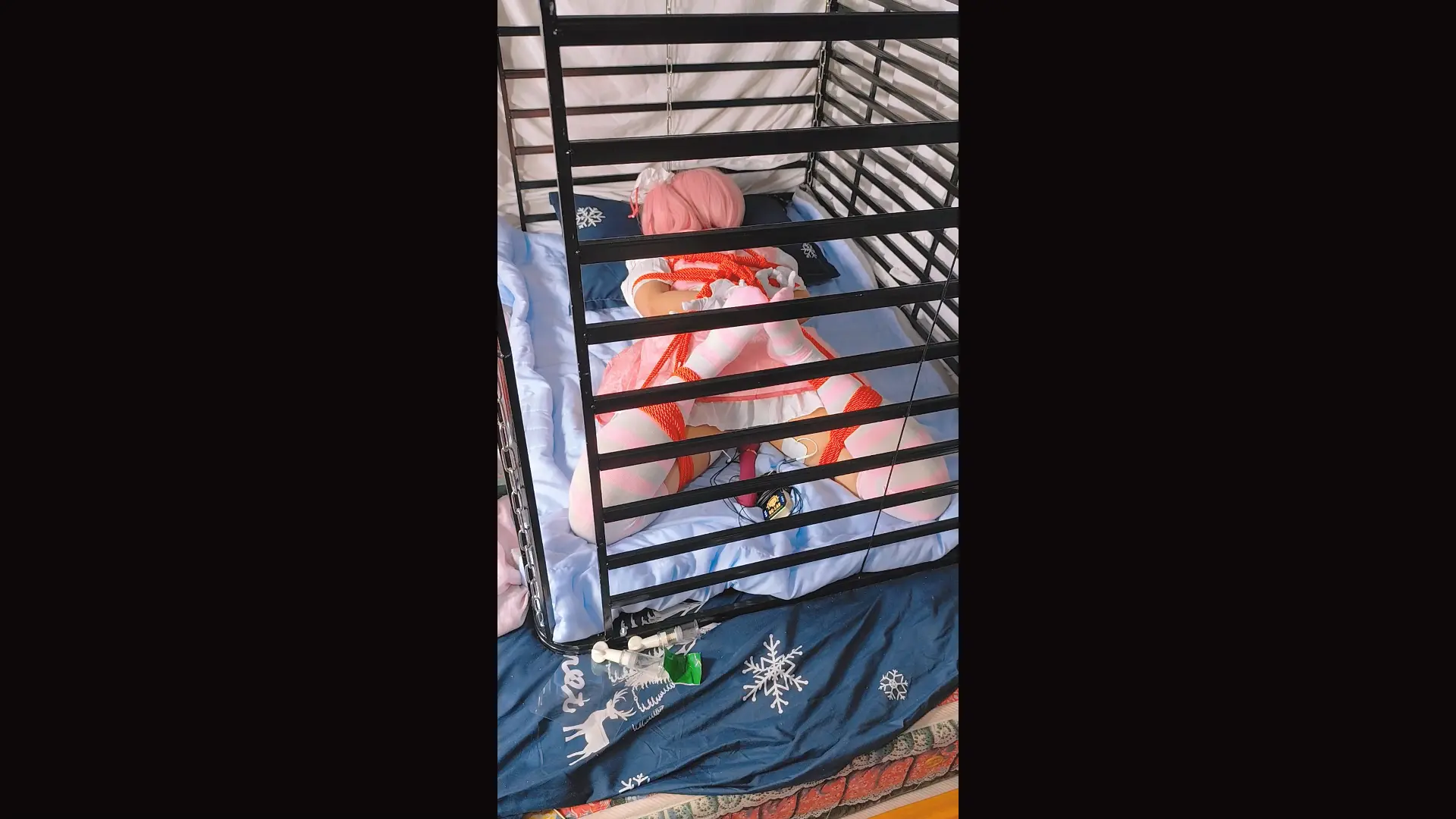 战败的魔法少女真是可爱呢!全身粉粉嫩嫩的,想必捆绑起来一定会非常可爱吧,今天带来的是驷马捆绑的放置玩法哦,辅以电击和震懂棒,不知道魔法少女小圆会不会很舒服呢?