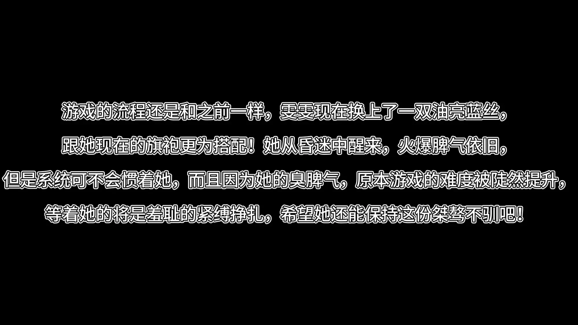 游戏的流程还是和之前一样,雯雯现在换上了一双油亮蓝丝,