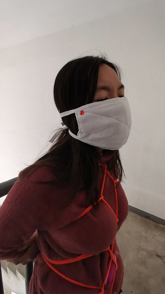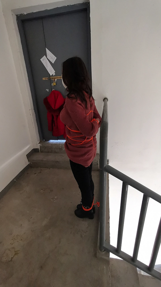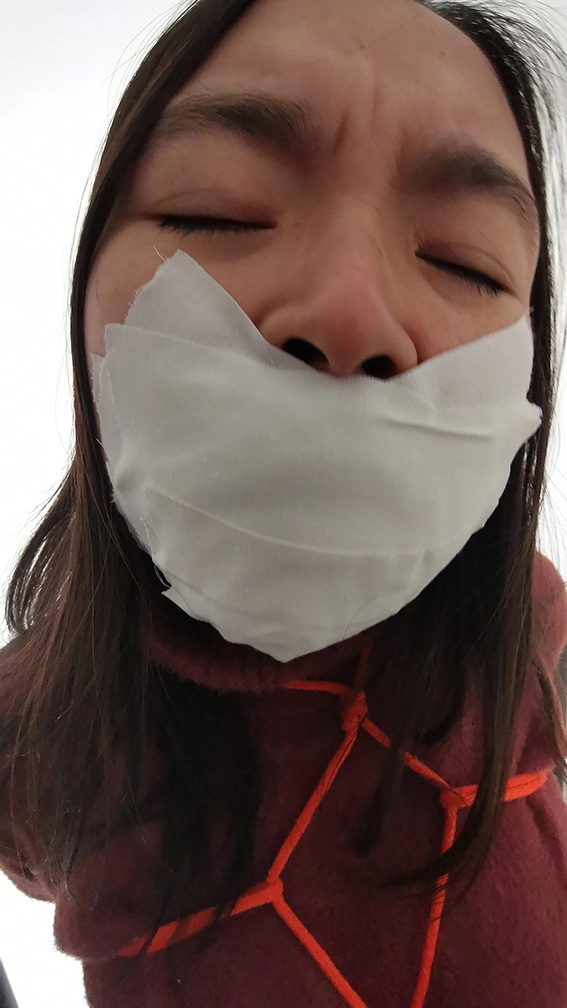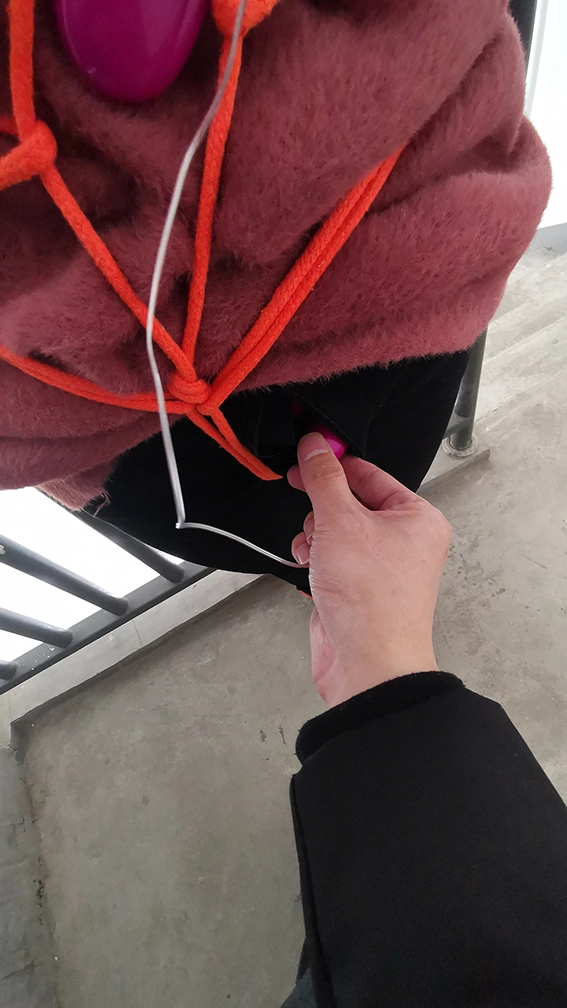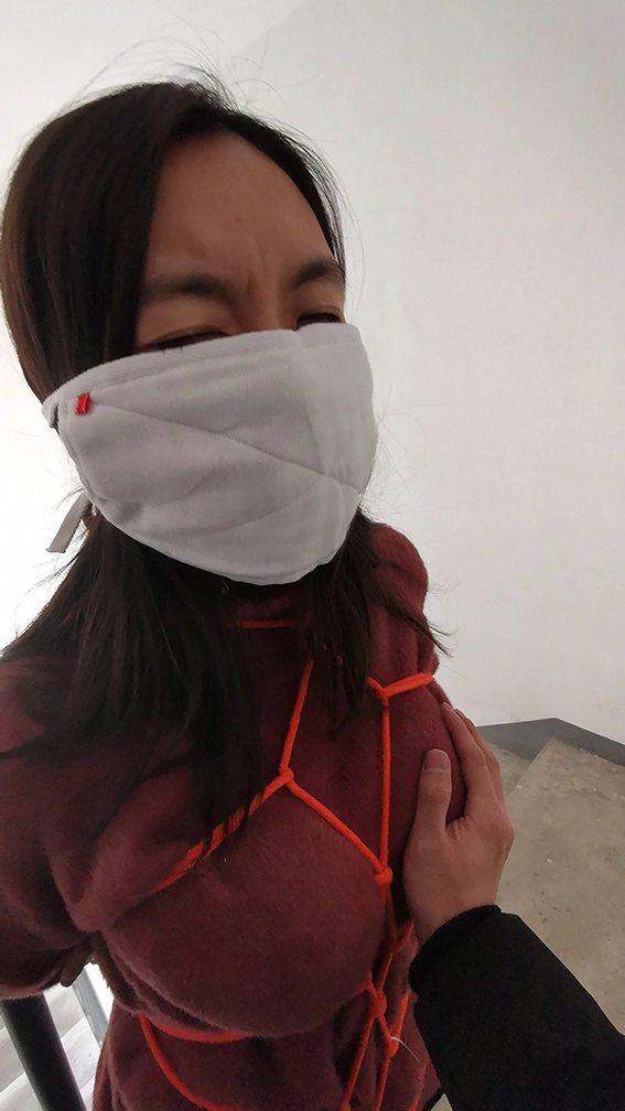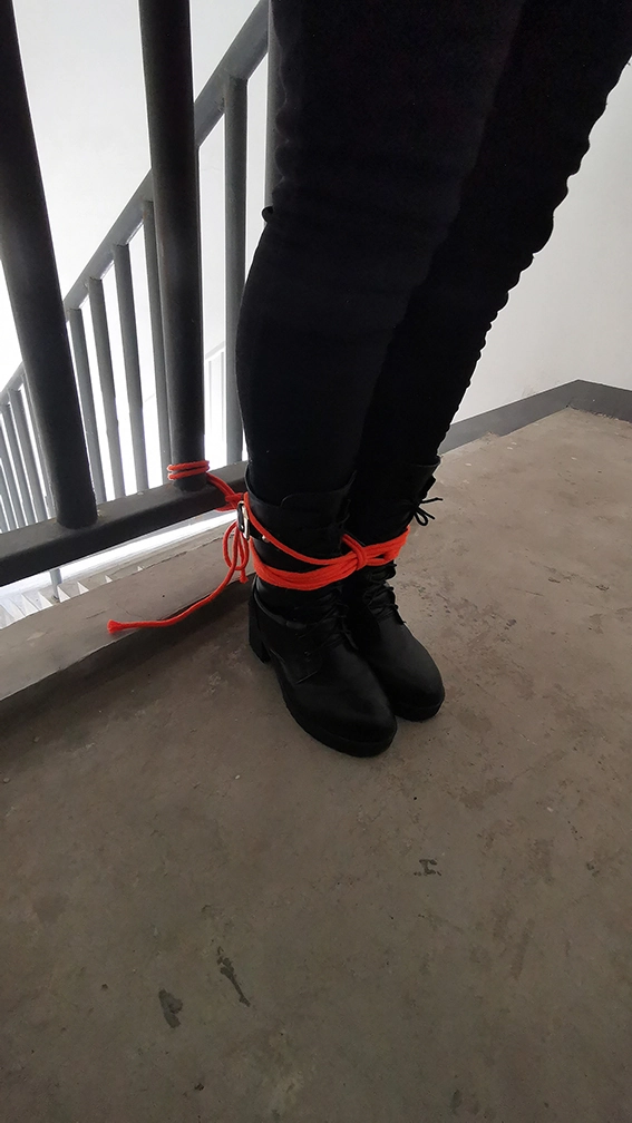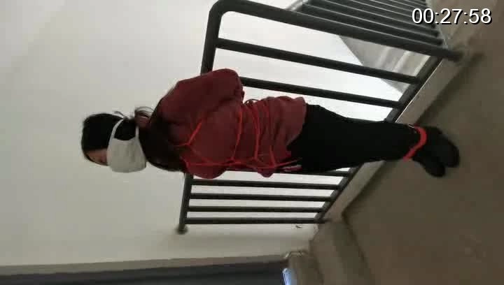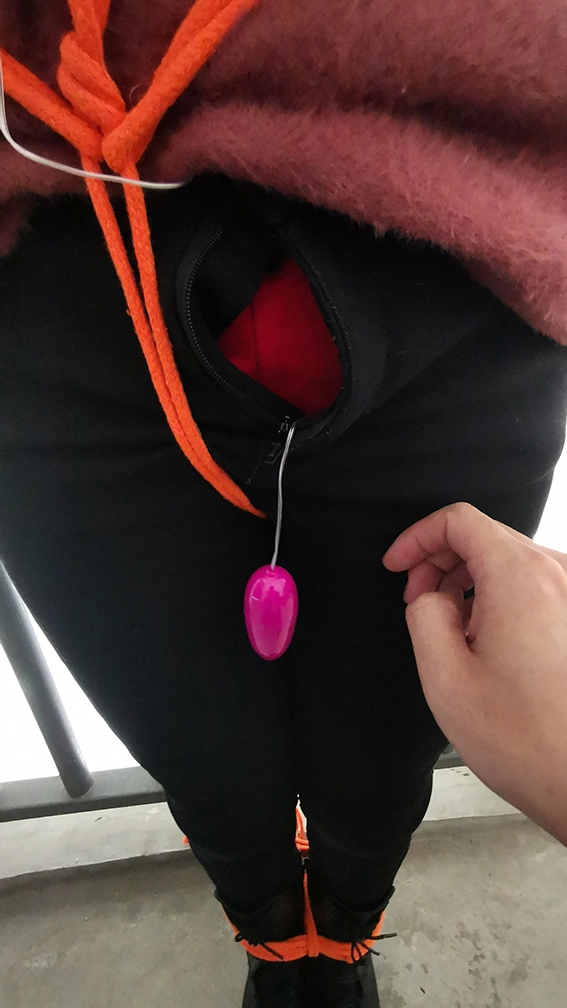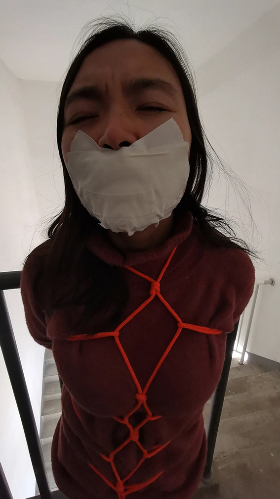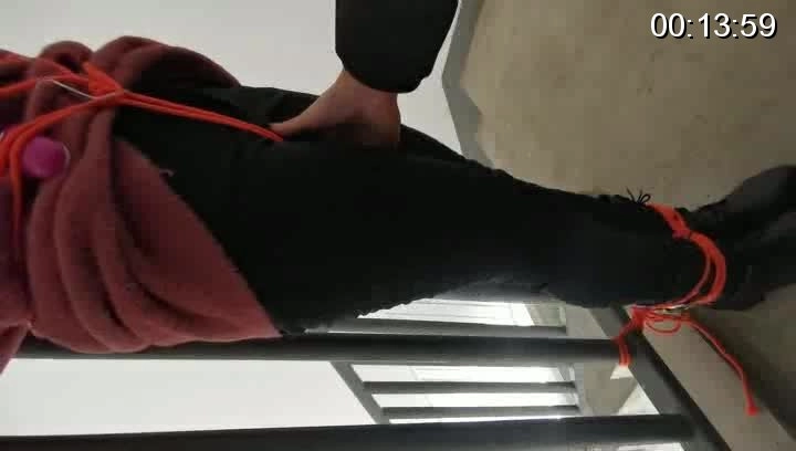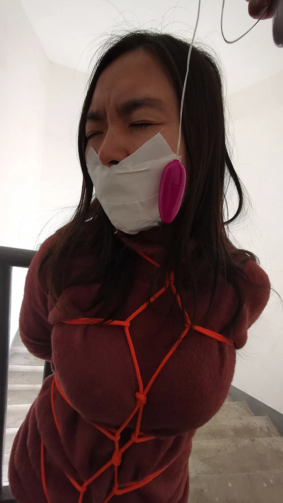 外出捆绑,来到公寓顶层的楼道,楼下能听到频繁有人出入,绑在楼梯栏上,这时要是有人上来就完了,根本来不及解开,下面给塞进去个DD震动,嘴也封死,GC来临,只能扭动身体的呻吟。