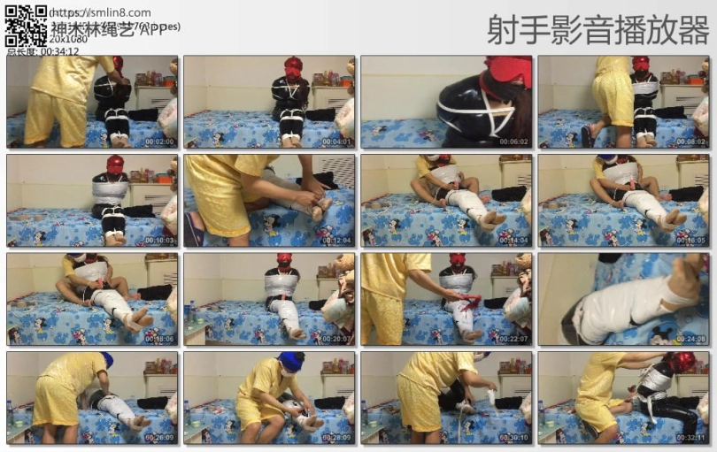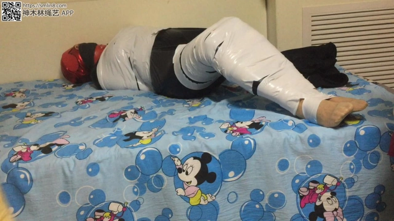 拿出她没洗过的丝袜塞进她嘴里,塞的时候她还不知道,快速用绷带缠几圈,在用胶带开始木乃伊捆绑,一圈又一圈,直到缠住双脚。