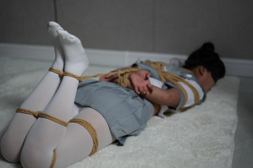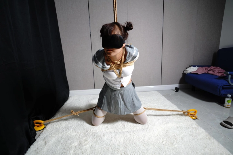 最近听说绳缚可火爆了,七七经过一番努力终于收到了邀请,刚进去就被带着换上了衣服,白丝袜+水手服让她很兴奋,眼罩一戴只感觉到绳子在上身缠绕,胳膊被固定在身后,双腿也被捆绑起来,一个驷马绑好,她已经完全动弹不得,口球一戴只能在那儿挣扎,“嗯嗯~啊啊~呜呜~”的呻吟声接连不断,放置了一会后,又重新换了姿势,胳膊吊缚+股绳+双腿捆绑固定,只能膝盖支撑,灰太狼时不时还挠痒痒等一系列骚操作,七七急得不知所措,但又真正束手无策.......