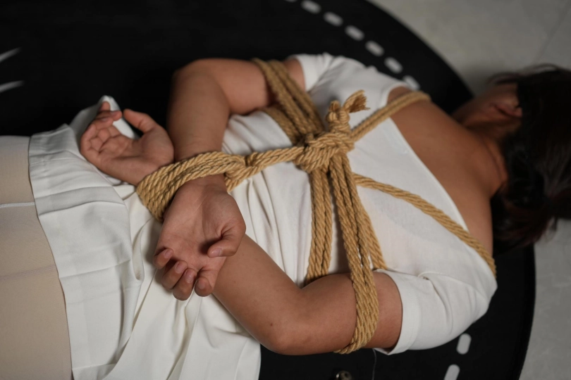 七七刚换好衣服出来后,灰太狼就给她戴上了眼罩用脚铐和手铐束缚住了她的胳膊和腿,这一波操作让她猝不及防,没等七七反应过来就塞入了口球,紧接着用筋膜枪在她身上肆意游走,整个屋子只能听到七七的呻吟声.......天真的她以为这就结束了,没想到却只是开头,脚腕高高吊起,屁股离地,皮鞭用力抽打,接着又是一顿捆绑与调教,这一顿操作也让七七无法自拔,痛并享受着!