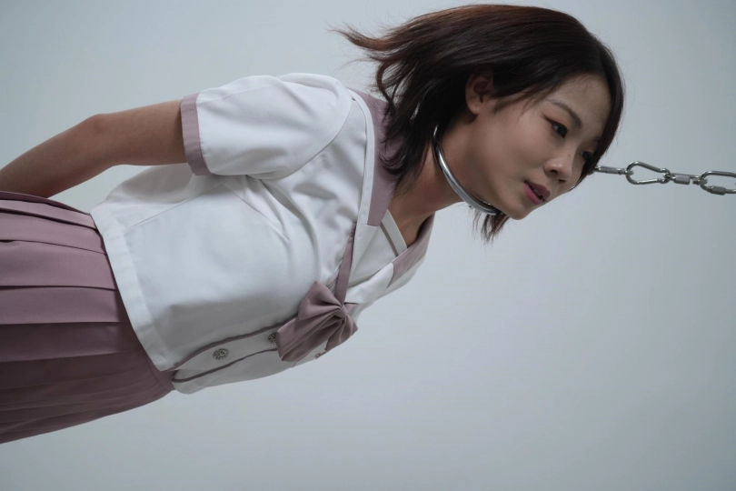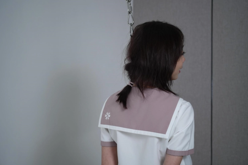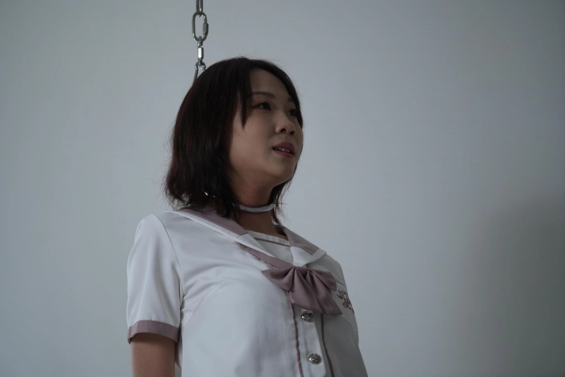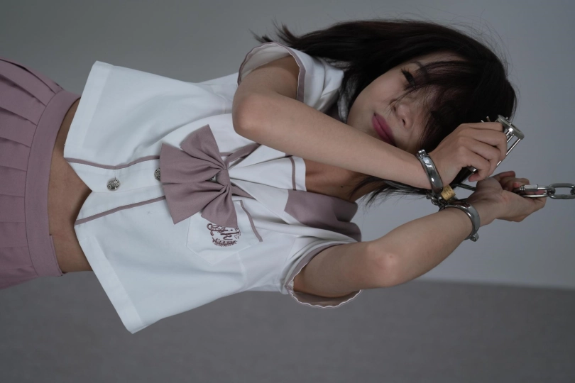 丹丹误打误撞来到绳艺挑战游戏,慌乱下脖子上多出了个项圈,还没等弄明白就被吊起,手脚并拷,脖子也只能仰着,脚尖踮着解手中的模具,本以为解开就可以结束,没想到还有下一环节游戏,虽然骂骂咧咧,但手不能停,几番折腾也没有打开。惩罚时手被拷在背后用链子固定在椅子上,各种道具挨个尝试,只听见一片“嗯嗯 啊啊 哈哈”声,已经累瘫的七七求灰太狼放过她。颜值与身材并存!