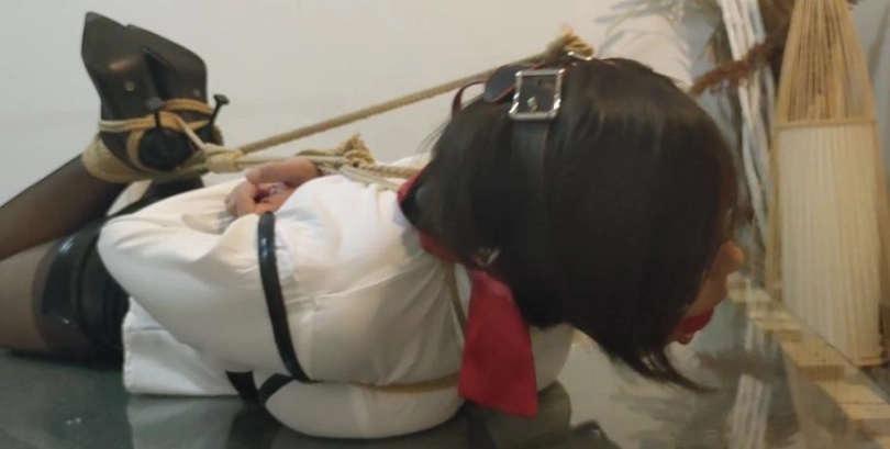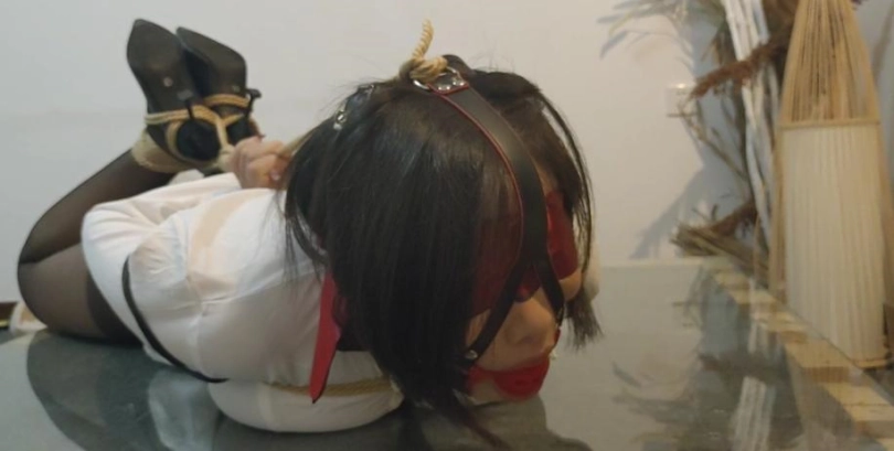身穿皮裙白衬衫工作回来的高管小女友被绑起来放在桌上慢慢欣赏....
