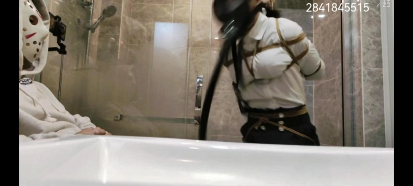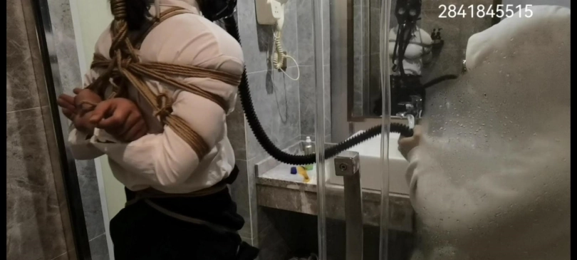 双手高高吊在背后每一次缠绳子都是最紧,发现小旅馆厕所的门框是个不错的吊点直接吊起来防毒面具反复窒息。超绝挣扎调教,真的过瘾后续还吊绑强制垫脚。