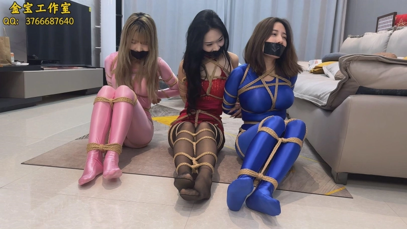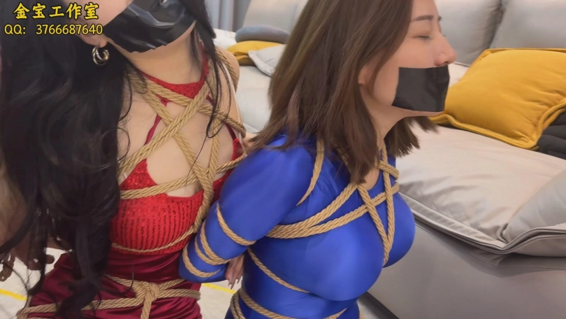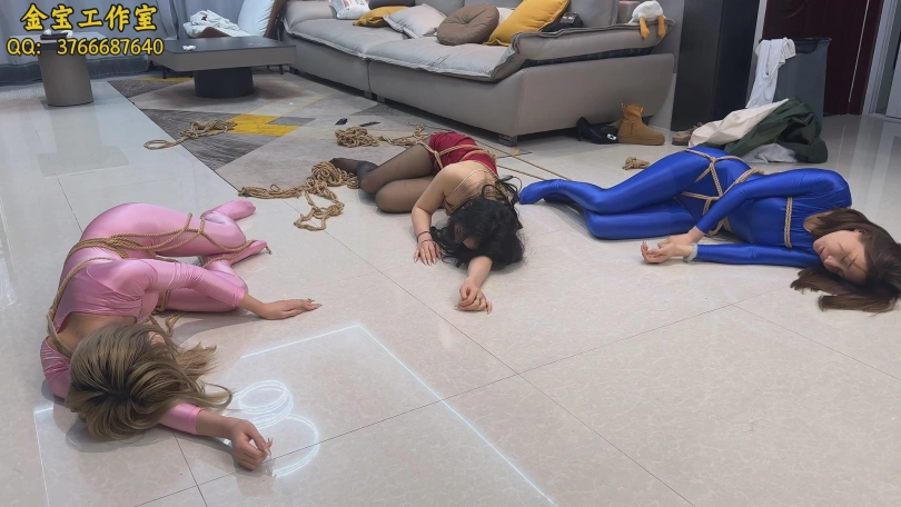 女贼姐妹和贵妇中了陷阱被绑了起来,三女好不容易解开绳子准备逃出去,没想到这只是房间主人的游戏罢了。