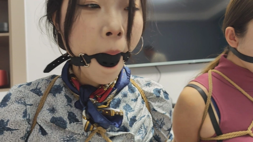 四个美女经过一阵Tj,被换上各种制服准备出售,先给老大过目,然后关押起来准备运出。