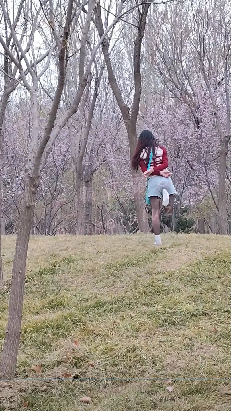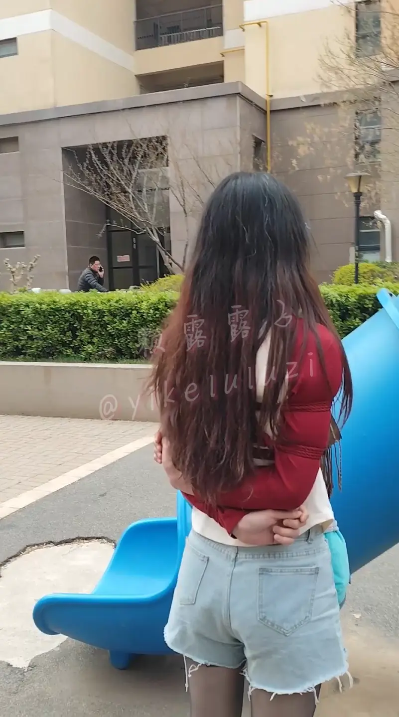 熟悉的衣服不熟悉的环境,热裤黑丝白棉袜,如果多仔细观察能看到背在后面不知所措的双手。日式捆绑全程不披衣服公园和小区和人行道散步,引多人注目观看。