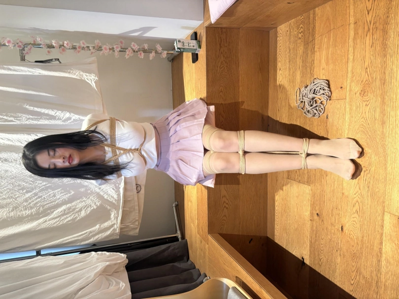 兼职模特舒宁接上一部体验,肉丝+口球+胶带封嘴+驷马+蟹缚+tk+胶带捆绑+挣脱,有足部特写。