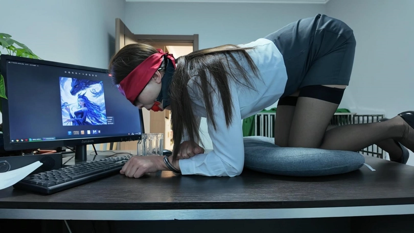 女老板在办公室发情,自己带手铐跪在办公桌上带上口球,柠檬片,口水哗哗的流,被羽毛调戏后,一发不可收拾,拿出按摩 棒,自己玩起来,声音那叫一个销魂,一会就达到了巅峰
