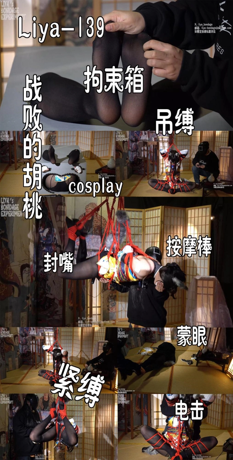 吊缚/cosplay/紧缚/拘束箱/电击/封嘴/蒙眼/棒子/黑丝/永劫无间