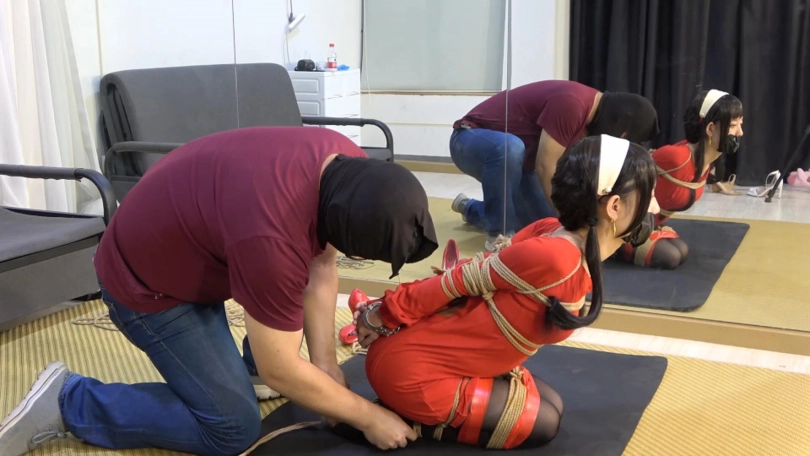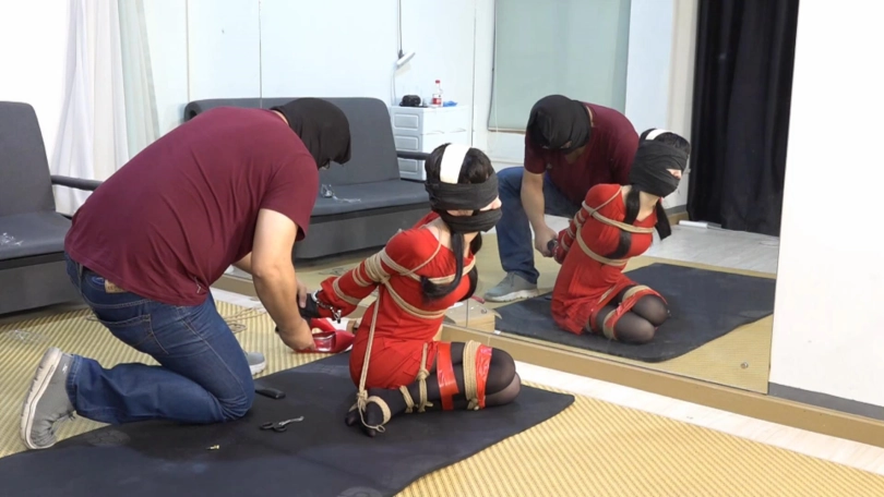 【文件大小】:1163MB 第一次尝试COSPLAY定拍,感觉珊珊其实不太适合约尔(珊珊本人也同意),约尔太太的身材也确实很难还原。总之拍出来图一乐,剧情拍得不好大家也见谅。 约尔听到敲门声,打开门看见地上有一封信封,她知道自己的任务来了。打开信封,约尔赫然看见自己女儿的相片。 她十分惊讶,坐在沙发上不知怎么办。 一个特务闯进屋:“怎么了约尔,不是说绝对忠诚于组织吗?” 约尔:“你们怎么能对一个孩子下手!我死也不会干的!” 特务:“那你就死吧!” 约尔上前一个箭步就要击倒特务,可特务突然举起一个手机,手机上是一些螺旋状的花纹图案。约尔看到后身子顿时昏昏沉沉。 特务:“你当年被训练时,就已经被我们催眠了,一看到这个图案你就是我的傀儡了。” 被催眠的约尔面无表情正对着摄像机军姿站好。特务发出口令让她转身、稍息测试她是否催眠成功。 特务(扔给约尔堵嘴用的袜子和胶带和手铐):现在跪下,用胶带封住自己的嘴,用胶带绑上脚和腿,再把自己拷上。 约尔脱下鞋子,整齐放在脚边,用胶带绑住双脚和双腿。跪下,拿起胶带与堵嘴物,封住自己的嘴,用手铐反铐住自己。特务这下大胆起来,开始用绳子捆绑约尔。他用绳子将约尔双臂并肘绑住,和身子绑在一起;大小腿绑在一起,跪在地上再用胶带缠绕加固捆绑,双脚脚面被绑住,绳子与手腕处的绳结连接,大脚趾也被绳子绑住 特务把剪刀和遥控器放在远处:“约尔,我在你女儿学校放了一枚炸弹。左边这个剪刀能让你脱困;右边那个远程遥控器则能停止炸弹的倒计时。选哪个看你了。” 被五花大绑的约尔竭尽全力挣扎到盒子前,准备用剪刀剪开绳子脱困。这时她突然内心一触,毅然选择拿起遥控器按下。 特务:无药可救!说着用胶带蒙住约尔的眼睛,把她的双手绑成拳状,又用布蒙住约尔的脸 约尔做最后的挣扎,很快体力不支晕了过去,侧倒在地上。 ![]() ![]() ![]() ![]() ![]() ![]() ![]() ![]() ![]() ![]() ![]()