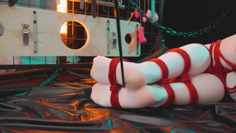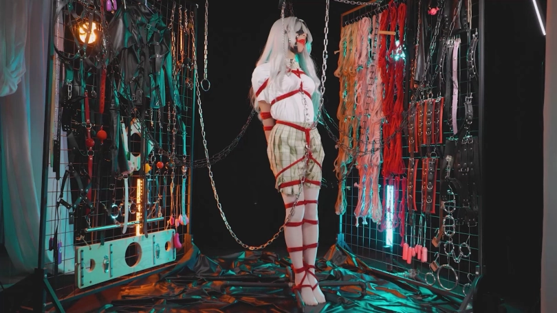 蒙眼、封耳、堵嘴,流萤JK的捆绑放置挣扎。