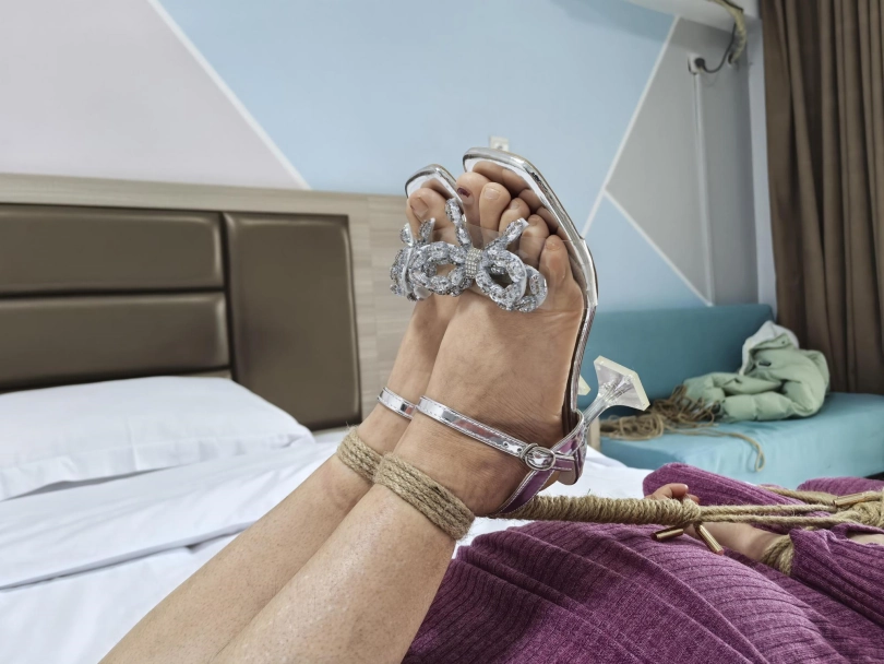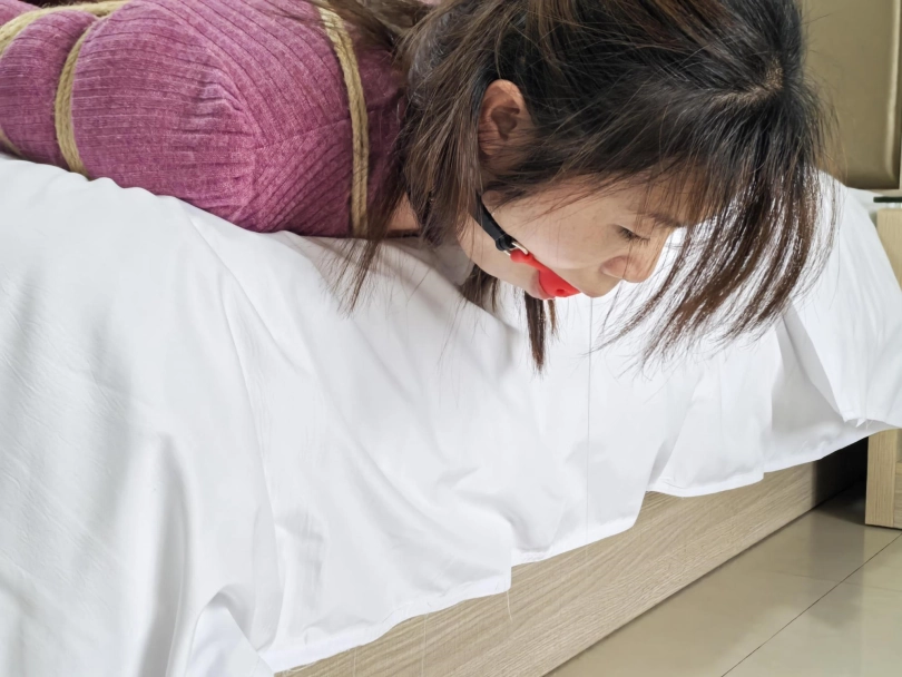 绑好之后直接让她口水流烟灰缸里,然后就出门抽烟聊天,给她自己在床上挣扎流口水,流了半缸口水挺不错,看着都有点搭小帐篷。