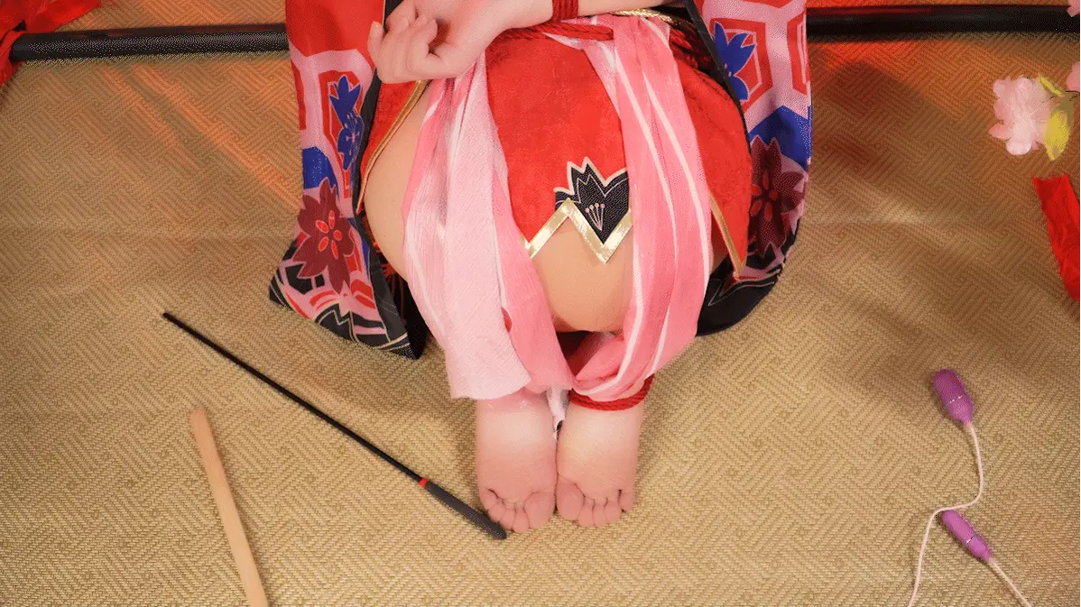 蒙眼、封耳、堵嘴,花火的捆绑放置挣扎。