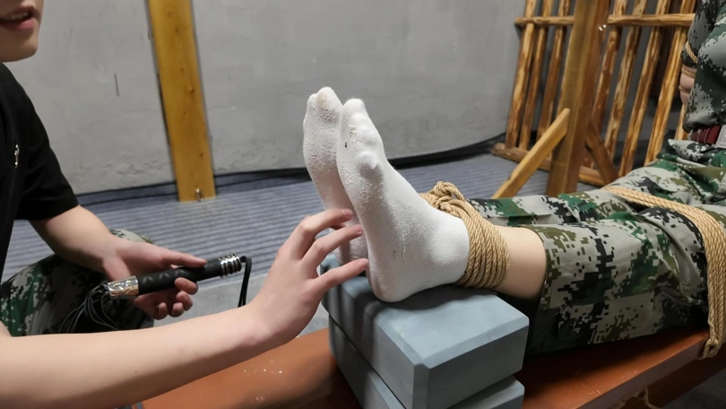 特战队员接受捆绑训练,没想到教官是敌方卧底,被绑到老虎凳上面折磨,又被吊起来折磨,实在受不了,说出了另外一个队员地址,人贩集团又按照地址抓了另外一个队员,又是老虎凳,吊起来折磨,挠脚心,这次是新演员参演