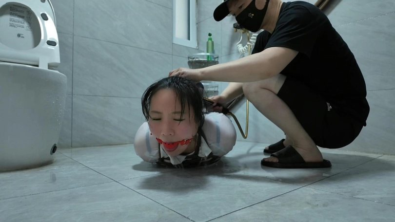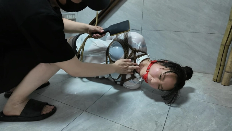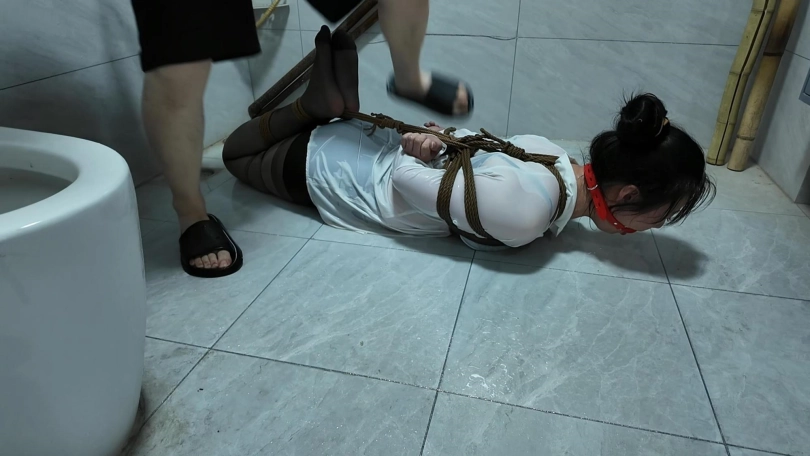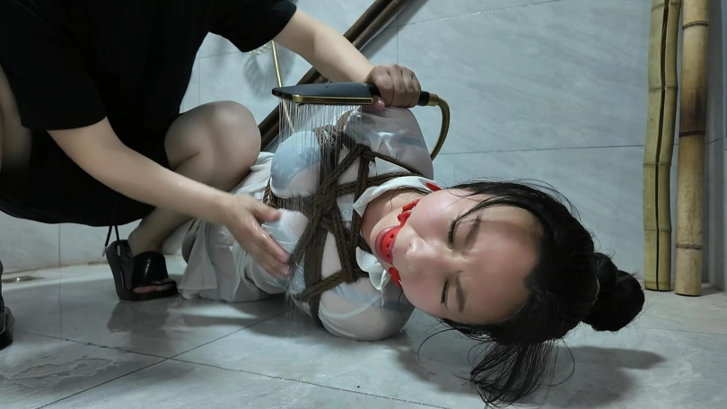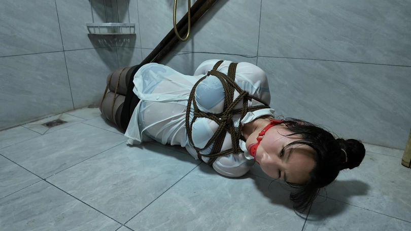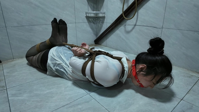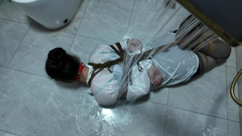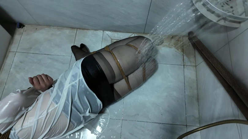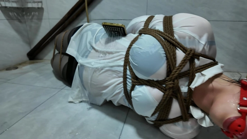 紫涵捆绑放置、驷马放置到卫生间淋水、绳子湿了之后会缩紧,最后解的时候很费劲,不得不说,卫生间淋水真的很好玩...我都玩的不想停下来