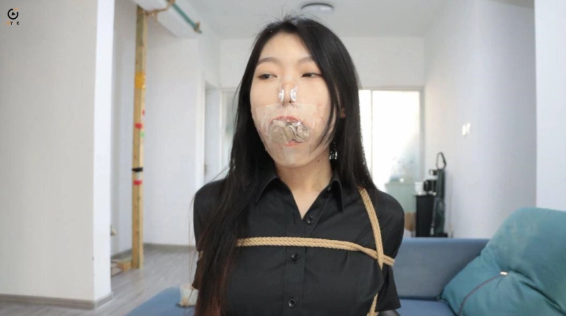 采用一种新的呼控方式,将琪梦捆绑堵嘴之后,给她戴上鼻夹,使她处于难以呼吸的状态,反复进行。