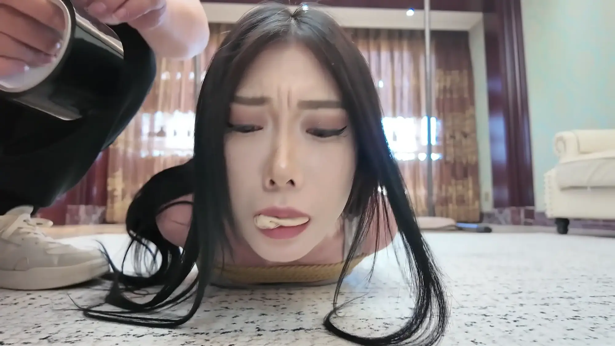 【视频时长】:00:32:21 【文件大小】:3044MB 芷溪是一名富贵人家的千金大小姐,这天,她在瑜伽垫上流畅地练习瑜伽。练习完这组后,芷溪从瑜伽姿势中优雅地站起身,坐在沙发上玩会手机,突然门铃声响起。门外是一个陌生男人进了房间,他说他是女孩父亲请来给她做安全培训的教练。芷溪很诧异,翘着二郎腿在沙发上很不屑,表示这个男人看起来弱不禁风的,不像是能教她什么东西的样子。男人则说自己是来训练她如何在被绑架的情况下逃脱,芷溪依旧很自负不屑,表示自己长期锻炼,就算遭遇了绑架肯定也能逃脱。于是,她站起身背过手,挑衅般的接受了男人的培训开始。 男人将芷溪绑成了一个简单的驷马,芷溪表示自己轻松就能逃脱。经过几分钟的挣扎,芷溪成功从束缚中逃脱。随即向男人炫耀自己的身手,表示绑架也不过如此。男人则说,刚刚只是让她适应一下,随后要来真的了。芷溪继续自信满满的背过手,告诉男人这次把自己绑紧一点,否则也太没有意思了。 最终,芷溪被很严厉的驷马捆绑起来,她尝试了挣扎挣脱了积分中,却发现这次被绑的特别紧,无论怎么扭动都无法挣脱。 男人出现,告诉芷溪,这下发现没那么好逃脱了吧。芷溪愤怒地让男人把她的绳子解开,却被告知在真实绑架中,绑匪可不会因为她的要求就解开绳子,相反他用袜子把女孩的嘴堵上,并用胶带缠死。这下,芷溪只能用愤怒的眼神瞪着男人,发出抗议的呜呜声。 男人告诉芷溪,想要通过训练,有三种方式。一是直接挣脱了捆绑,二是拿到女孩放在沙发上的手机拨打呼救电话,三是逃出这间屋子找路人呼救,随后离开了房间,留下芷溪一个人在房间里努力又无助的挣扎。 下部预告: 芷溪的闺蜜佳雯来找芷溪,发现被紧紧捆绑着的芷溪,急忙上去问发生了什么事。在得知事情的经过后,她先是取笑玩弄了芷溪一番,随后告诉她,自己想一起接受培训,为她报仇...... ![]() ![]() ![]() ![]() ![]() ![]() ![]() ![]() ![]() ![]() ![]() ![]() ![]() ![]()