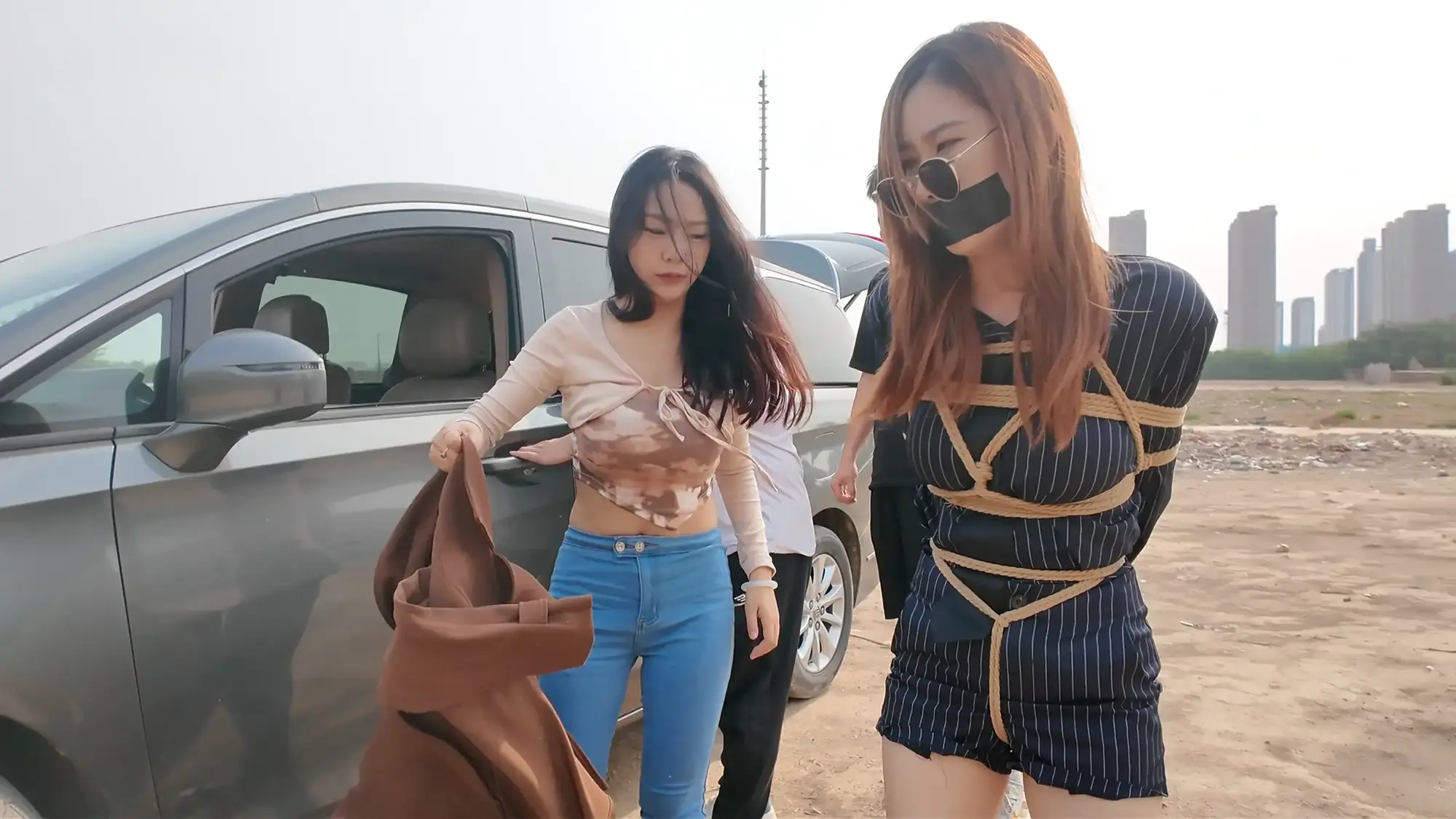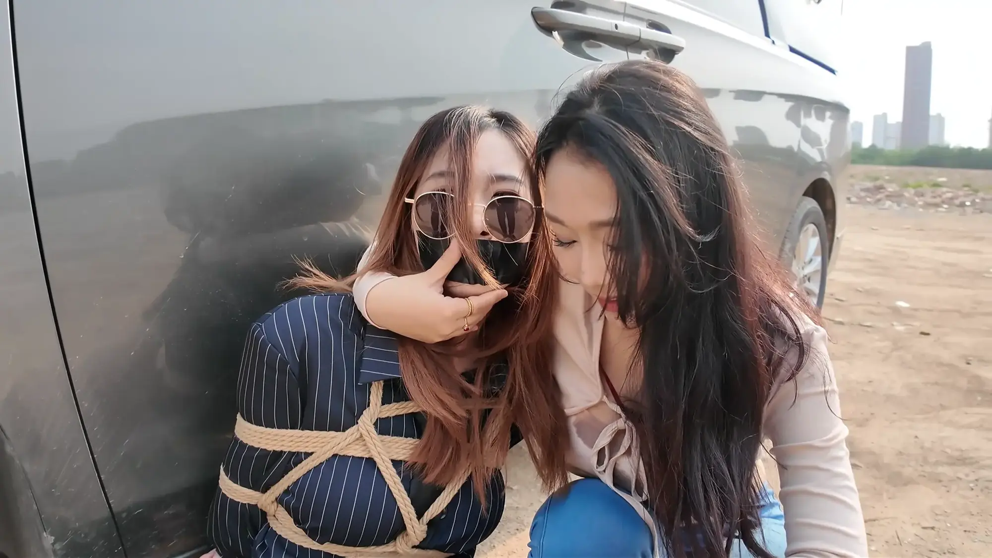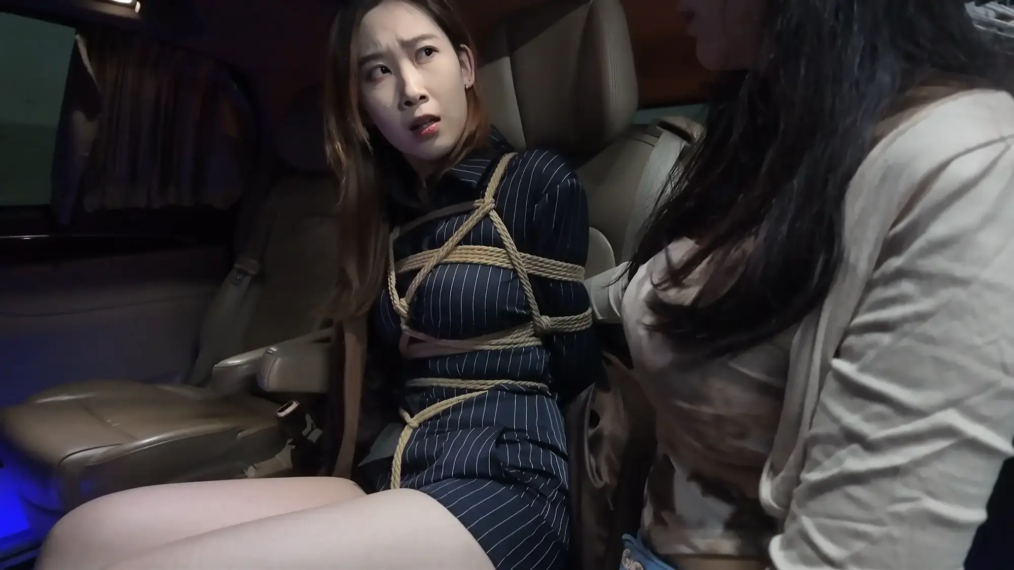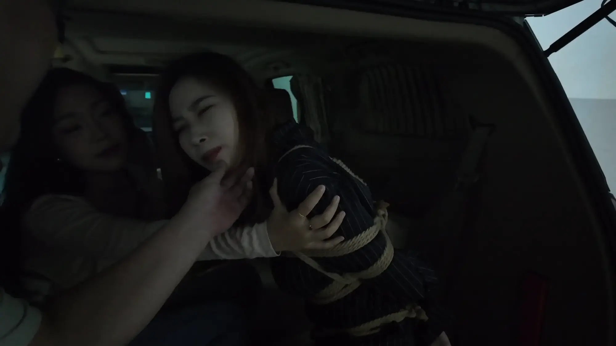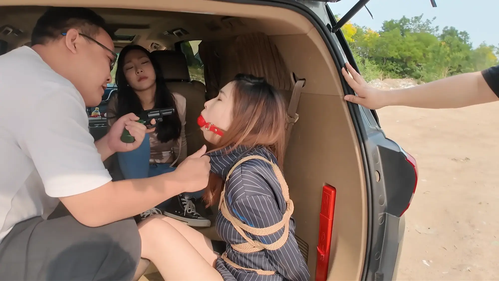 【视频时长】:00:27:10 【文件大小】:2306MB 佳雯饰演女老板,人称雷姐,常做地下交易的勾当,某日早上两位小弟向他汇报工作,告知雷姐一切安排妥当,但发现被一神秘人跟踪,两人拍下照片请雷姐过目,看过照片后的雷姐非常惊恐,命令小弟取消交易。原来跟踪者是闻名的南清探员,被她盯上的团伙没有一个好下场,慌乱中小弟想到个铤而走险的办法,让雷姐假扮“货物”,引诱南清上钩,获取她的信任后趁机偷袭,雷姐听到让她亲自做诱饵非常气愤,直言稍有疏忽就全完了,但在小弟的劝说下权衡利弊决定拼一次。片刻后,雷姐被小弟五花大绑起来,被戴上口球、口罩和眼罩,披上大衣带到了交易点的车中,假扮“货物”,两名小弟假装离开,躲在一旁观察的南清见时机成熟,打开车门给雷姐松开了绳子。令雷姐意外的是,南清竟然要求自己将她绑起来,披上大衣替代自己成为“货物”,以此潜入交易窝点,雷姐暗自窃喜,转过头就装可怜说自己不会绑人,以免南清发现破绽,立功心切的南清表示她可以教,即刻将绳子递给了雷姐。过了一会儿,南清被紧缚放在车中,她夸赞雷姐绑人很有天赋,而雷姐也卸下了伪装,点破了南清的身份,南清发现不对劲开始挣扎,雷姐一把抓住南清的头发说被自己绑起来的人可没那么容易挣脱,南清用力撞开雷姐跑出来汽车,但两位小弟已经挡住了去路,双手被反绑的南清没有了抵抗能力,被再次架回了车中。三人在后备箱折磨了一番南清,准备把她作为新的货物交易,雷姐将南清捂晕并戴上口球,三人带着“货物”出发。 半路中,南清苏醒开始呻吟挣扎,躺在后备箱睡着的雷姐被吵醒,正当准备教训南清的时候,车忽然急刹,雷姐训斥小弟得知是汽车爆胎泄气,三人无奈只好暂时原地休息,两位小弟见南清肤白貌美起了歹心,突然雷姐背后拉开了两人,命令他们什么也不许做,赶紧想办法把车修好。两位小弟很不情愿的蹲在一边抽烟,雷姐开始挑逗南清,表示她这么极品的“货物”可不能让那两个废物小弟糟蹋了,想起卖掉南清后马上就能名利双收,雷姐大笑了起来,一旁的小弟敢怒不敢言,只能偷摸的骂雷姐泄愤。 片刻后两名小弟接到修车的电话,表示修好车来接他们,两人开车走后雷姐电话响起,原来是购买货物的老板,雷姐电话里不停拍马屁套近乎,表示这次的“货物”绝对极品,并拿起电话让老板听南清挣扎的声音,之后雷姐便再次背过身和老板聊天,终于等到机会的南清开始施展脱缚术,片刻功夫就解开了束缚,她松了松手臂,小心的靠近雷姐。此刻的雷姐还沉浸在与老板的谈话中,丝毫没有察觉南清在靠近。在雷姐挂断电话的一刻,南清立刻控制住了雷姐,捂住她的嘴巴不让发出声音,南清搜寻雷姐的身体,发现枪被两位小弟拿着,准备带雷姐先逃走,一旁的雷姐不停摆头想要说话,南清松开她的嘴,雷姐劝告南清还是放了她自己逃命吧,南清表示死也要拉着她垫背,说完南清架着雷姐,拿起地上的绳子,推着雷姐逃离现场,雷姐抓准机会甩掉了一只鞋子。两名小弟回来后,发现地上掉落的鞋,得知雷姐可能出事,两人分析南清带着人质肯定跑不远,便掏出枪开车追寻两人。 ![]() ![]() ![]() ![]() ![]() ![]() ![]() ![]() ![]() ![]() ![]() ![]() ![]() ![]() ![]() ![]() ![]() ![]() ![]() ![]() ![]() ![]() ![]() ![]() ![]() ![]() ![]() ![]() ![]() ![]() ![]() ![]() ![]() ![]() ![]() ![]() ![]() ![]() ![]() ![]() ![]() ![]() ![]() ![]() ![]() ![]() ![]() ![]() ![]() ![]()