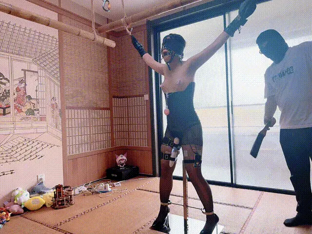 长达一小时的罚站架体验,固定好完全无法挣脱。双手吊高,极致电击调教,黑丝小M不自觉全身抽搐,长时间TK下无法反抗。
