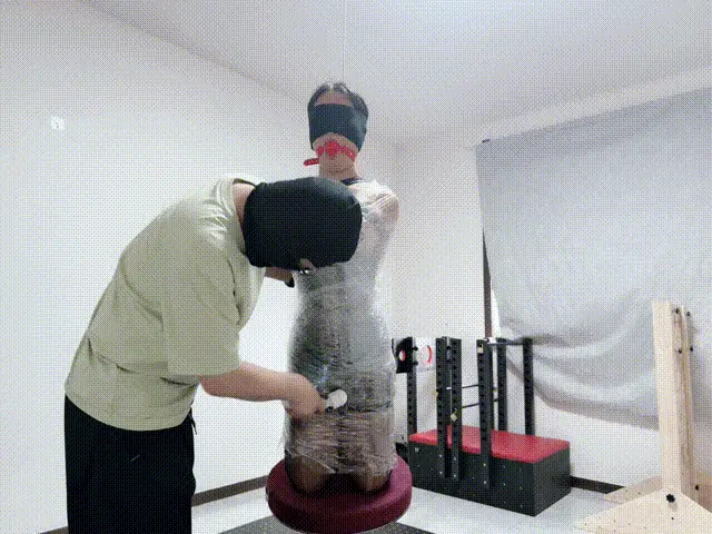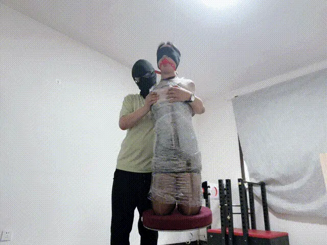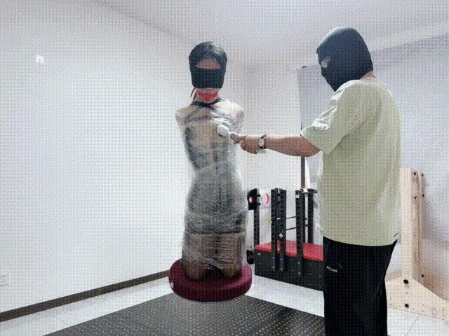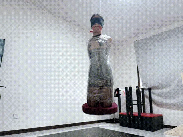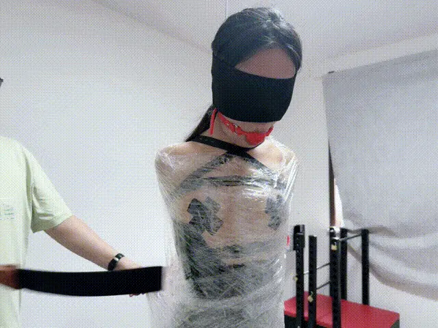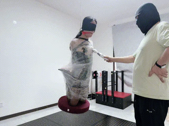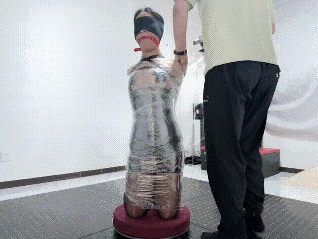 黑丝女大学生挑战单手套+扎带+缠绕膜三层极限束缚,旋转升天。